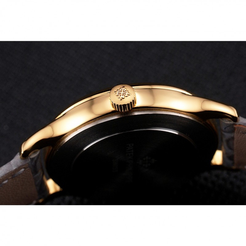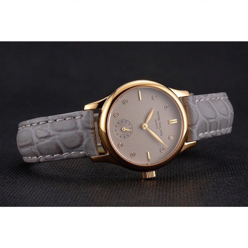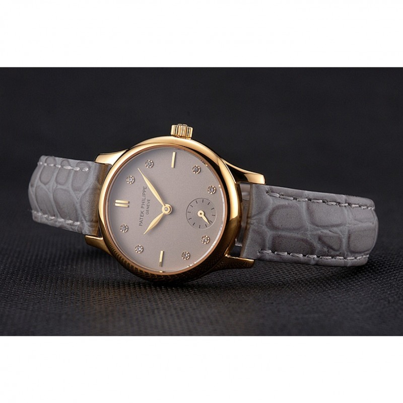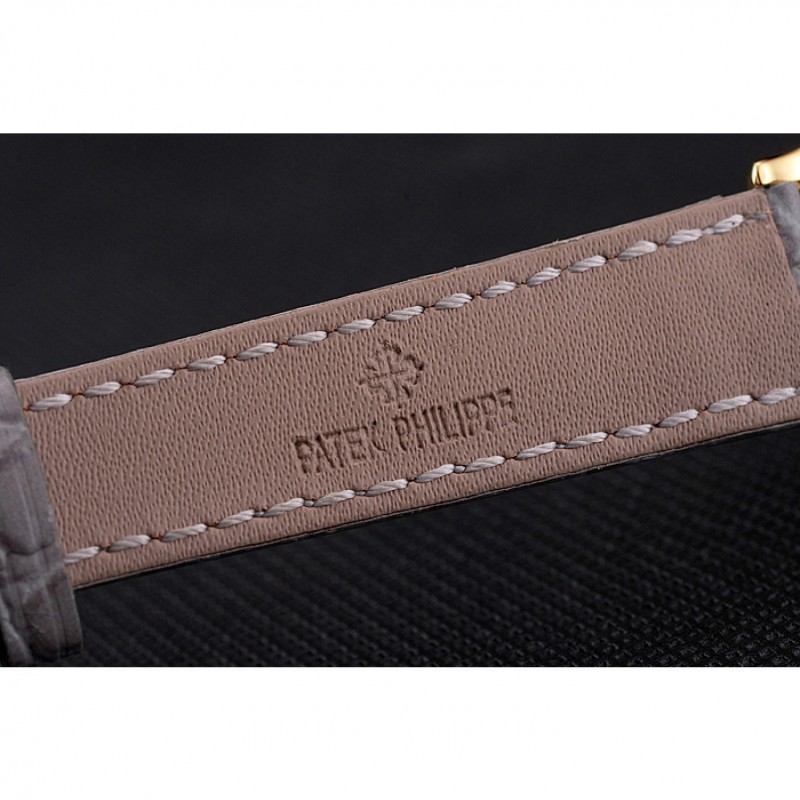 pulsera: Patek Philippe y logo calor en relieve correa de piel de cocodrilo gris con Patek Philippe y el logotipo inscrito 18k oro amarillo plateado gancho hebilla de cierre