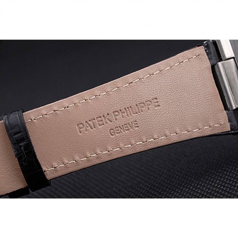 pulsera: correa de cuero Patek Philippe Geneve calor en relieve de cocodrilo negro con Nautilus grabado de acero inoxidable pulido de gancho hebilla de cierre