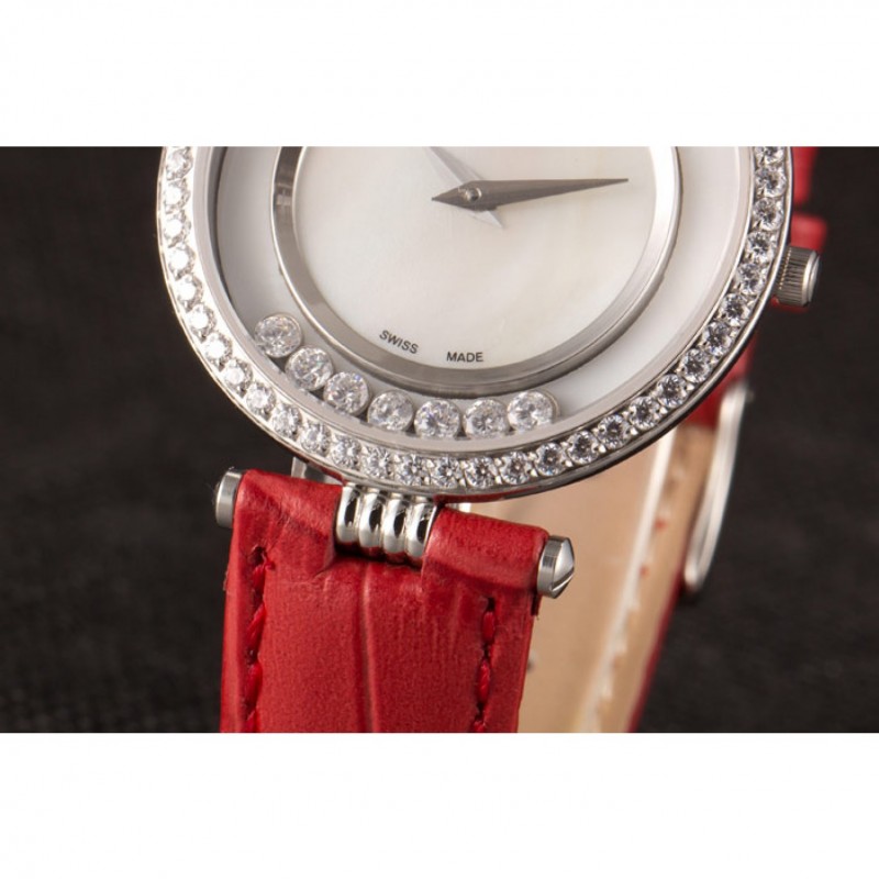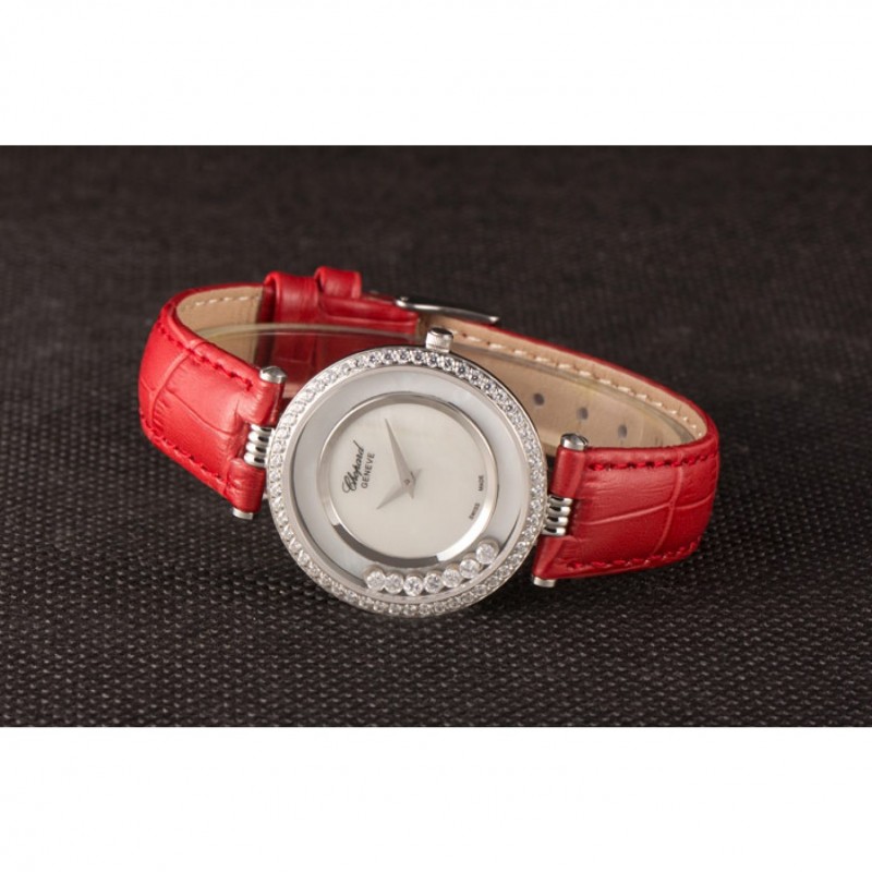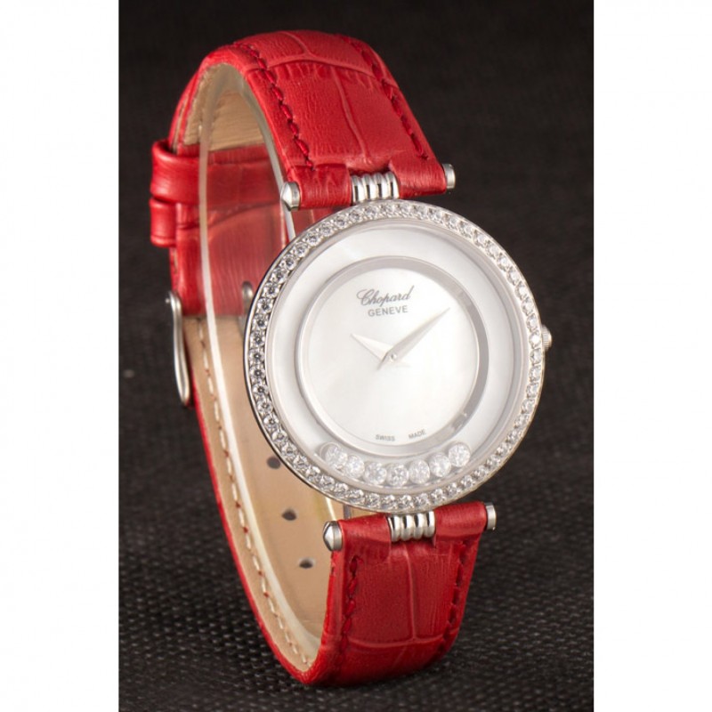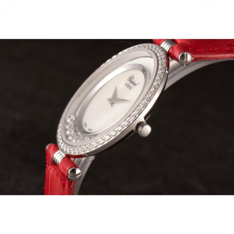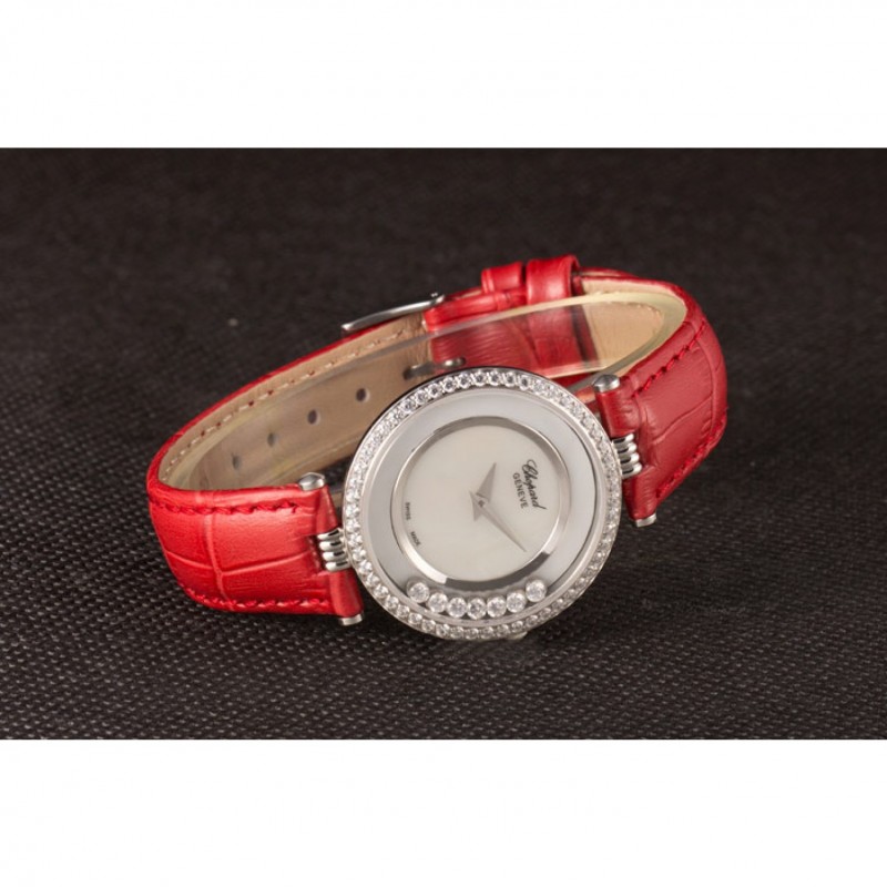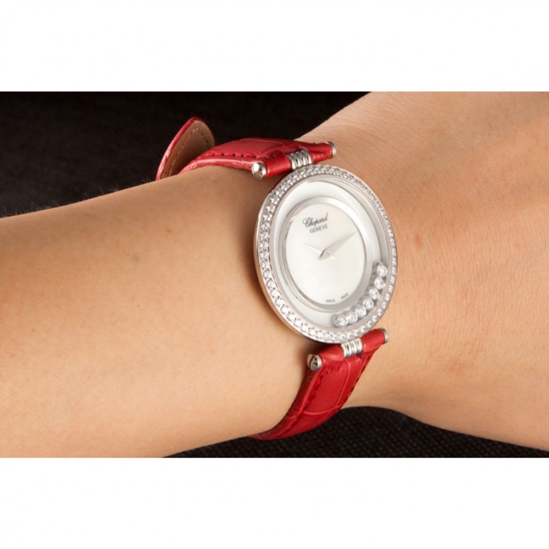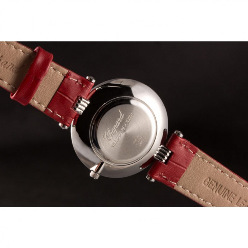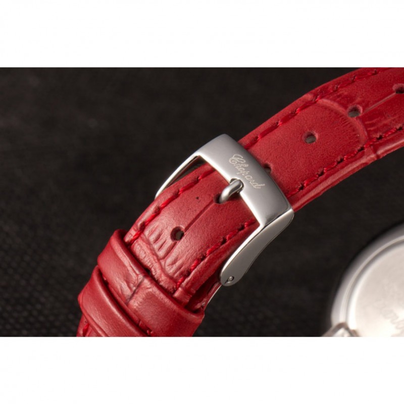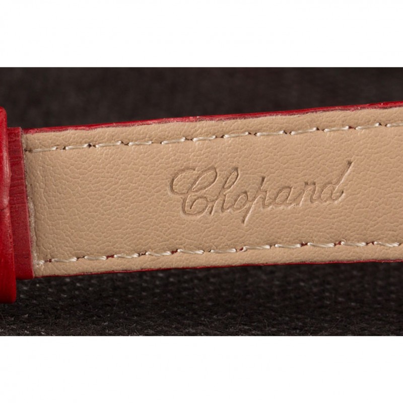 pulsera: correa de piel de cocodrilo de color rojo en relieve de calor Chopard con Chopard grabado de acero inoxidable pulido gancho hebilla de cierre