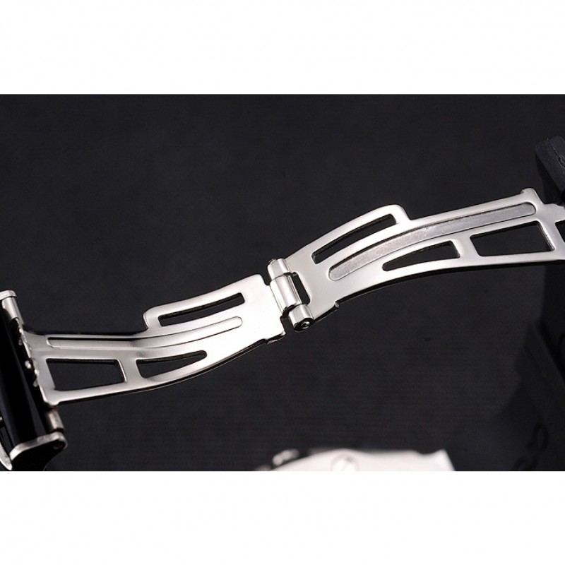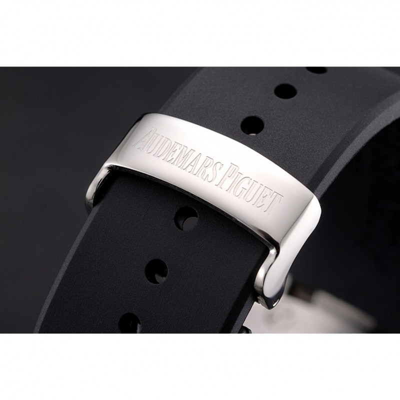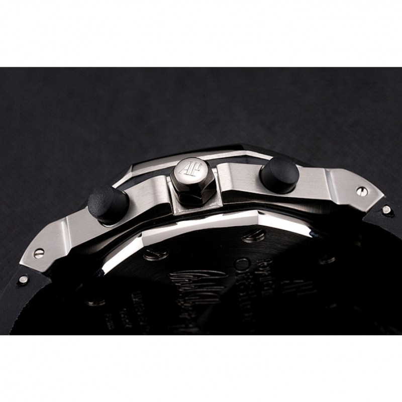 Crown: Audemars Piguet logo grabado pulido corona cutwork de acero inoxidable con una ronda de caucho negro pulsador corona en cada lado de ella
