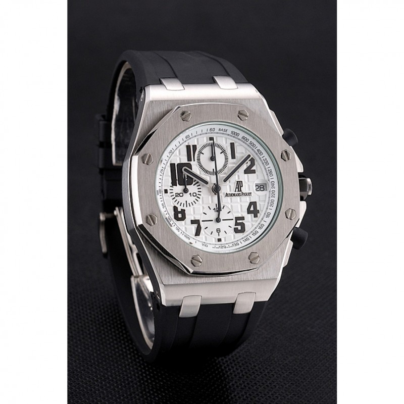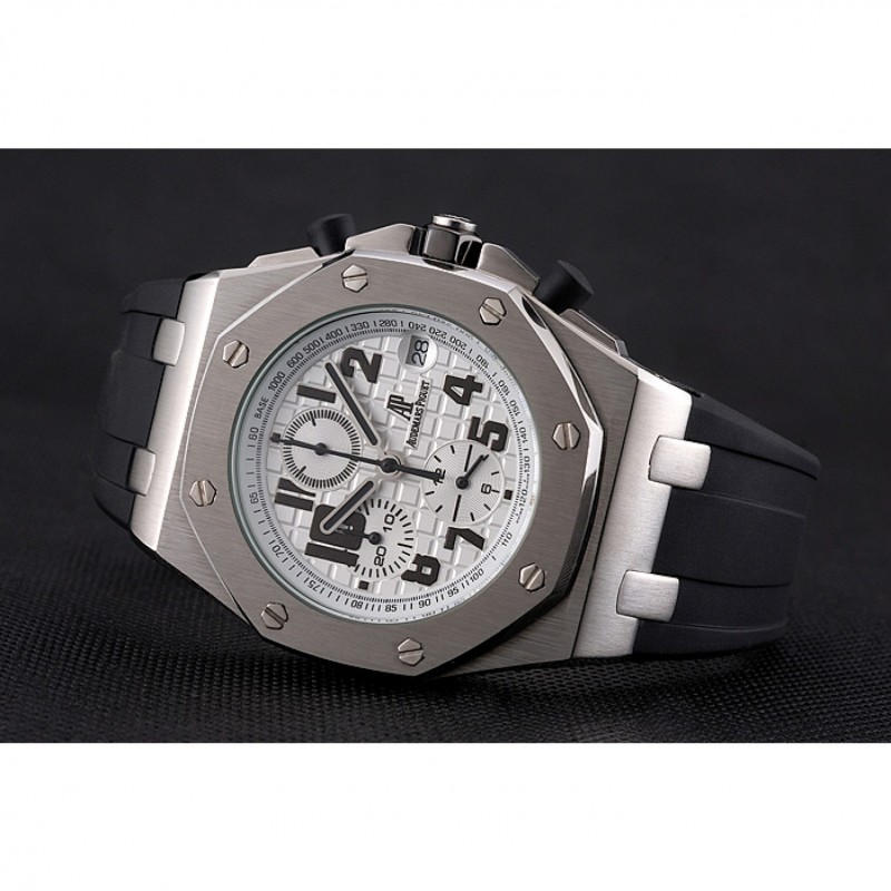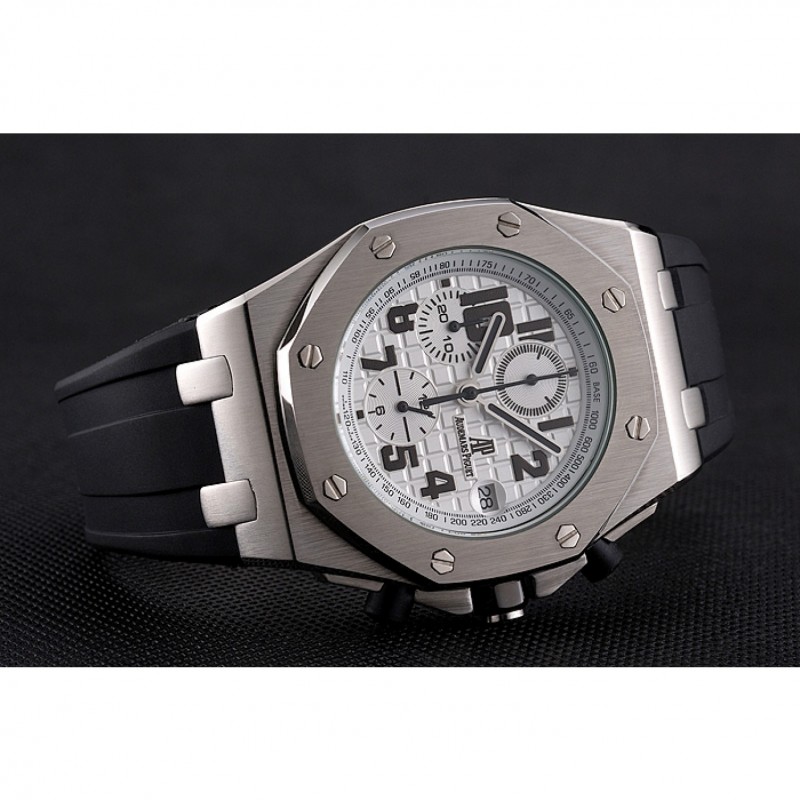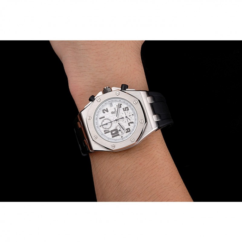 SS Réplicas Relojes Audemars Piguet Royal Oak Offshore Esfera Blanca Caja de acero inoxidable correa de caucho Negro