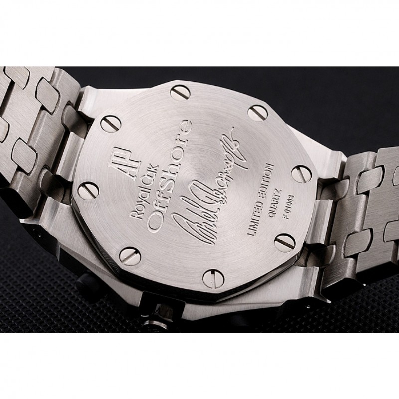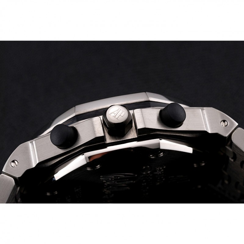 Crown: Audemars Piguet logo grabado pulido corona cutwork de acero inoxidable con una ronda de caucho negro pulsador corona en cada lado de ella