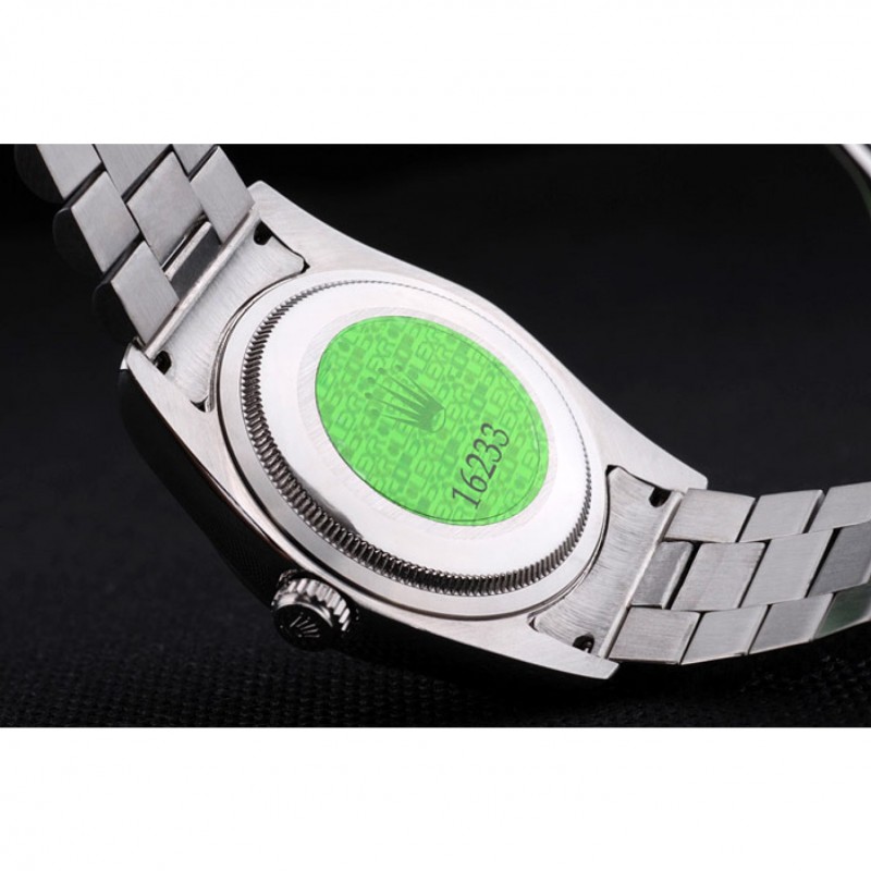 Volver: de acero inoxidable de empuje en el caso espalda con verde Rolex logotipo de sello