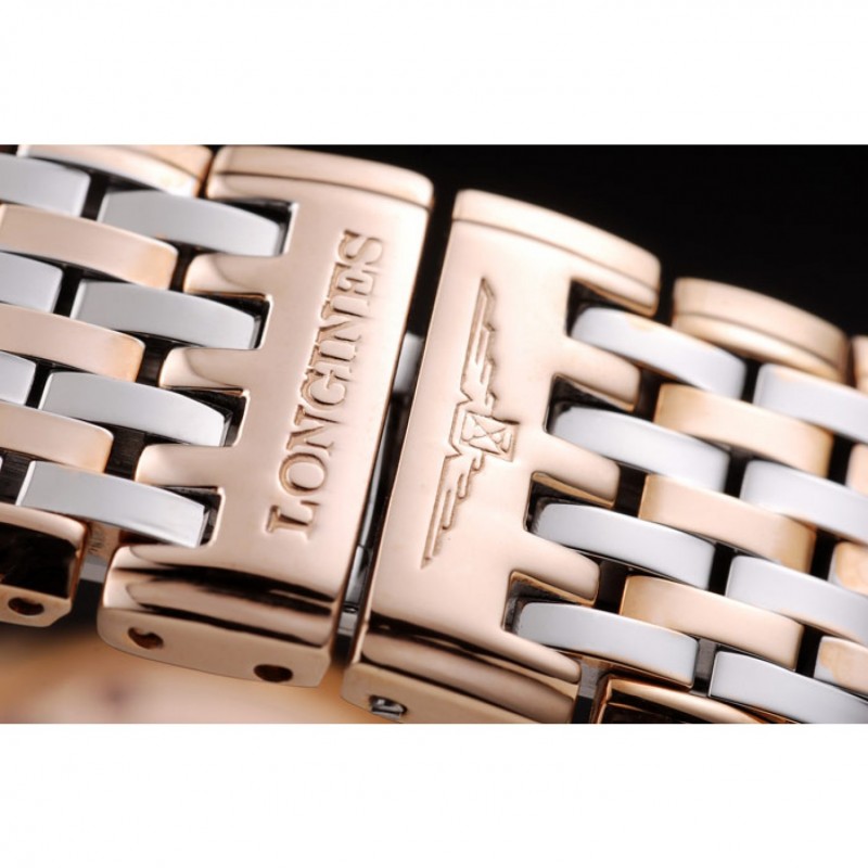 pulsera: 18k Rose- chapado en oro y pulido brazalete de eslabones de acero inoxidable con Longines y el logotipo grabado cierre oculto