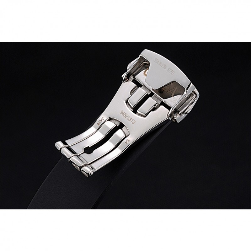 pulsera: Omega y correa de cuero de calor logotipo en relieve texturizado negro con el logotipo grabado de acero inoxidable pulido de liberación empuje el gancho del corchete