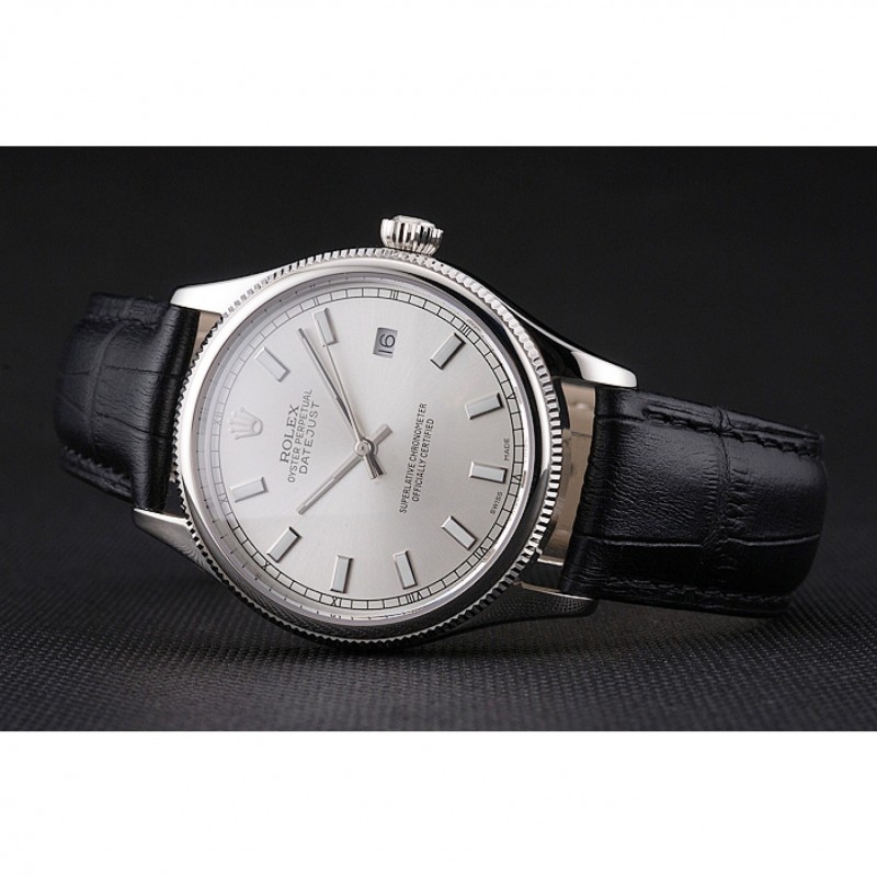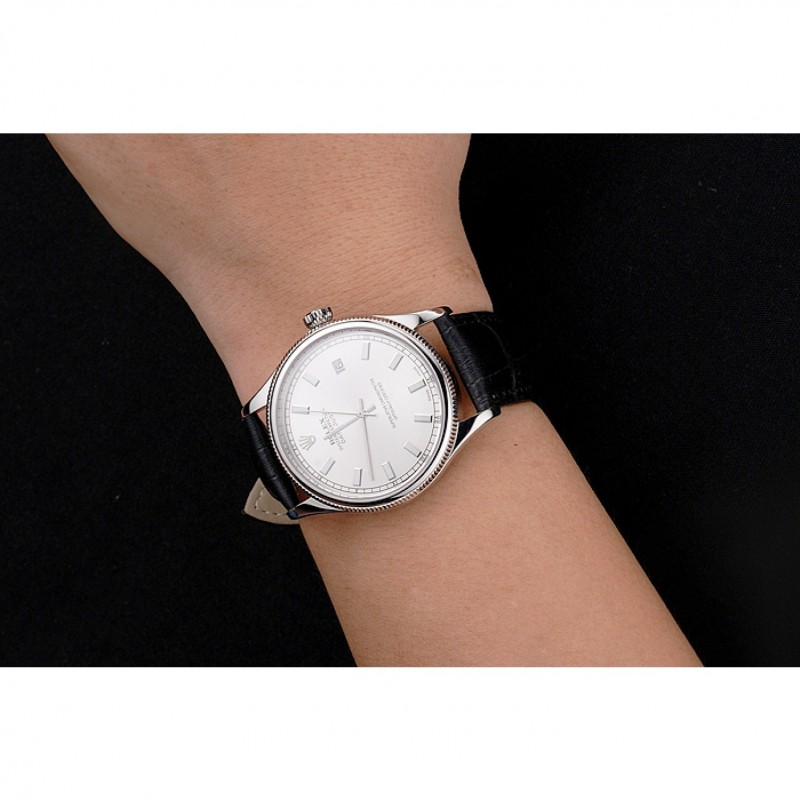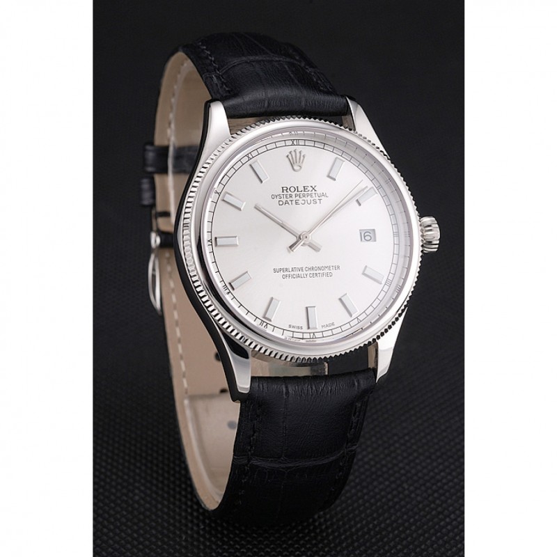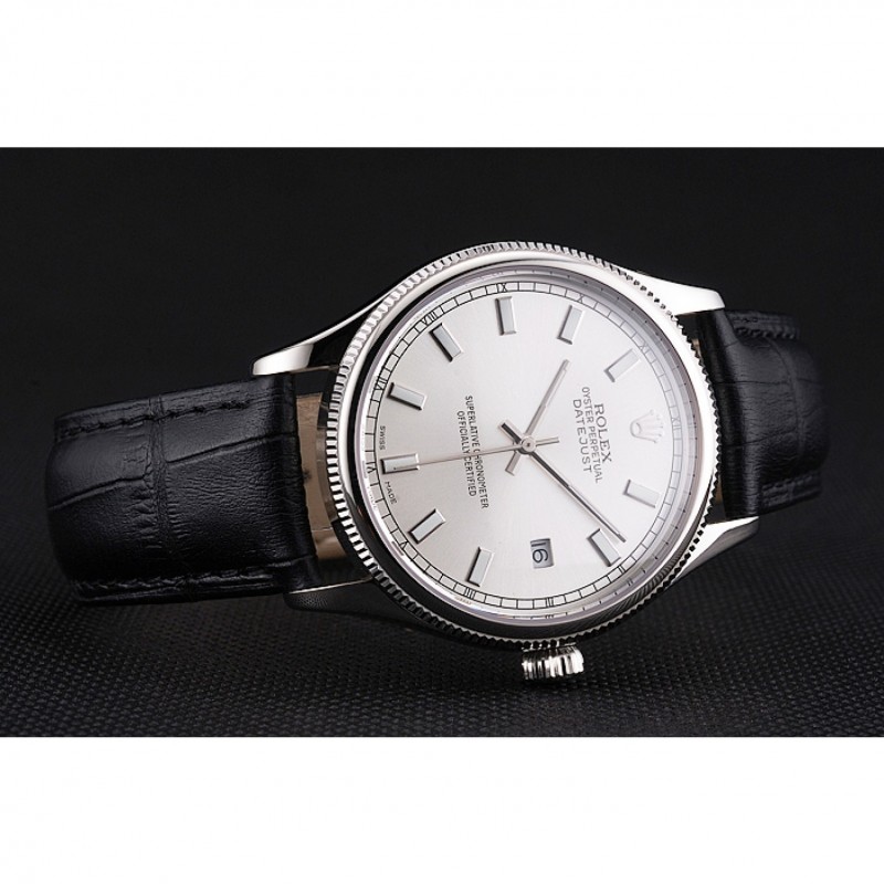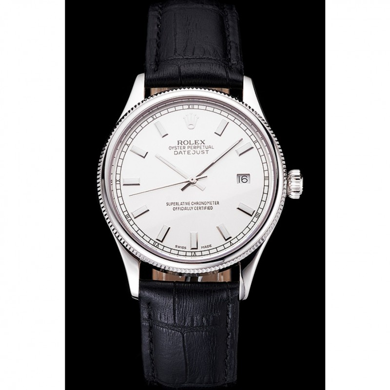 SS Rolex Datejust Blanco Dial correa de cuero caja de acero inoxidable Negro