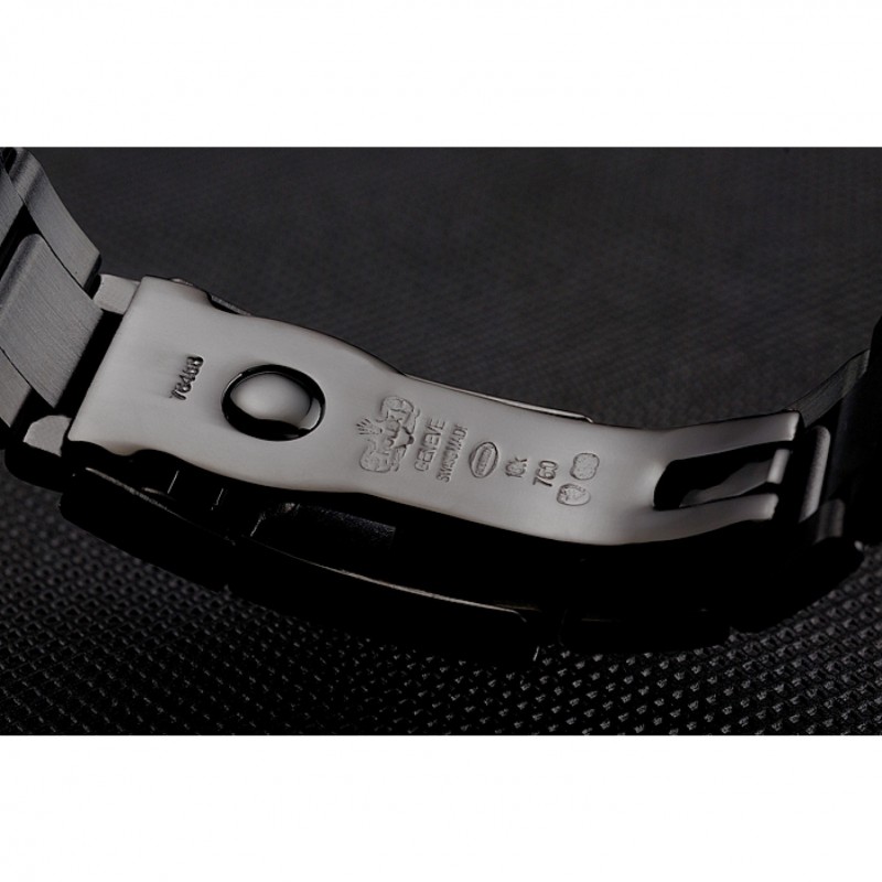 Crown: logo Rolex grabado corona cutwork ion-plateado con una corona de botón en cada lado de ella