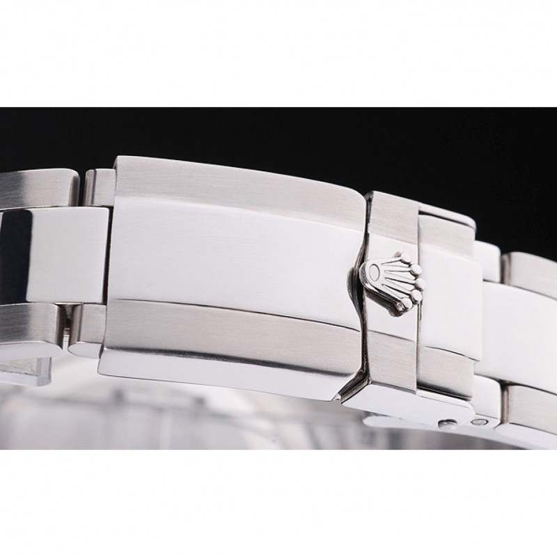 Corona: Pulido corona calado de acero inoxidable con el logotipo de Rolex y dos coronas adicionales a cada lado de ella
