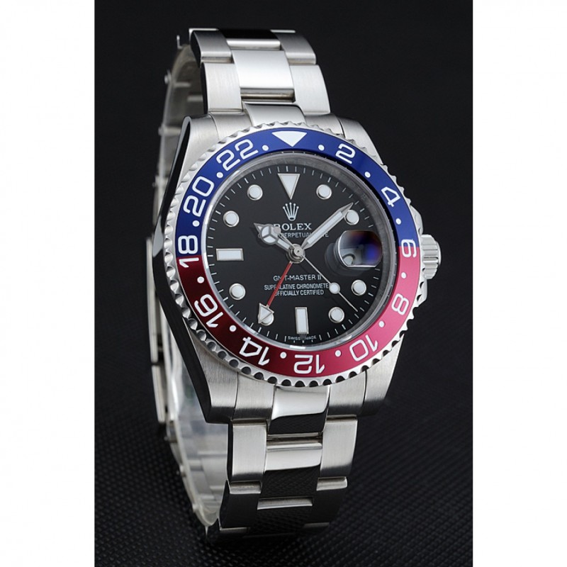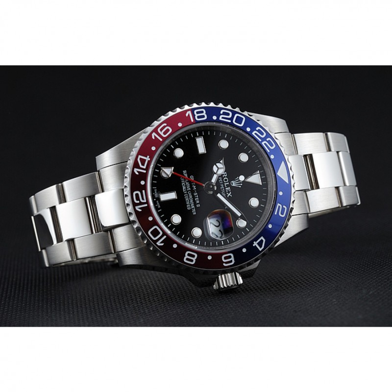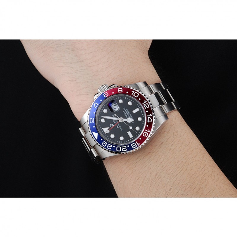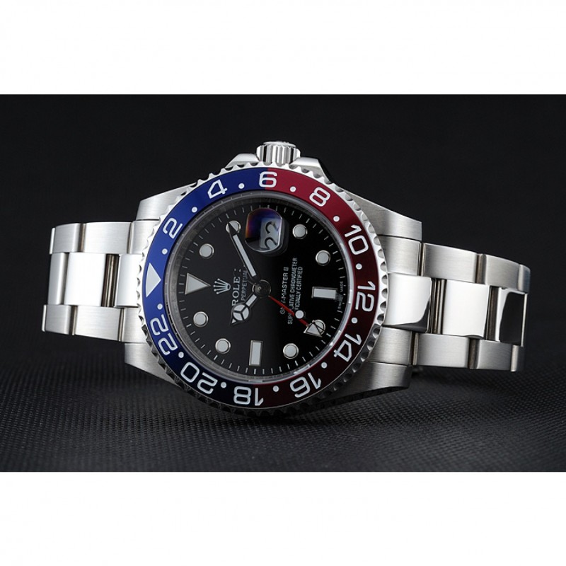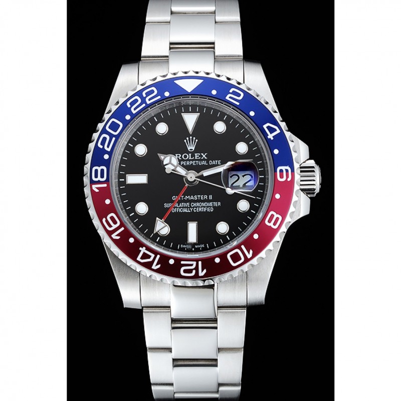 SS Rolex GMT Master II Blue Rose Rojo Bisel Negro esfera de un reloj