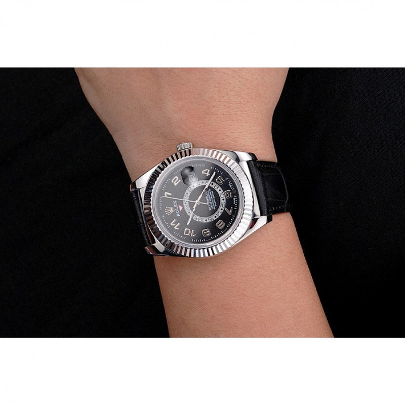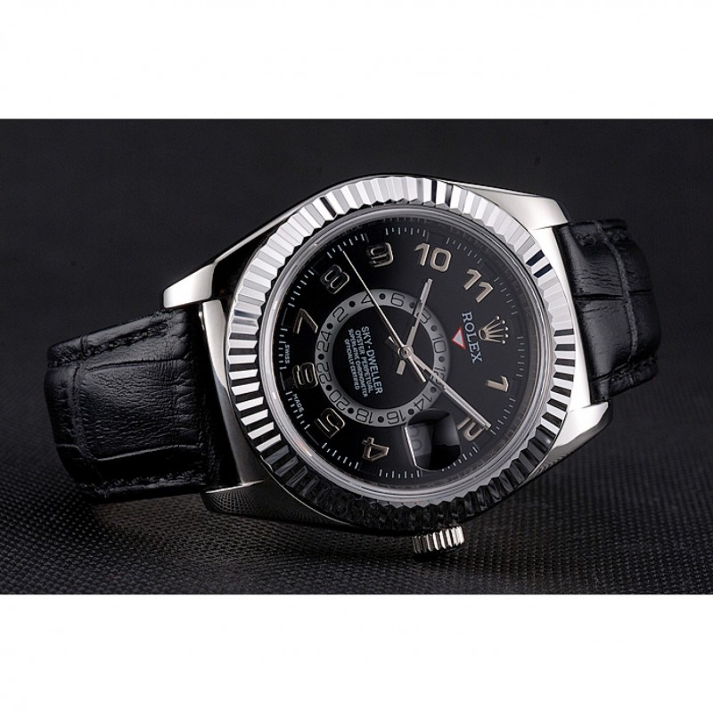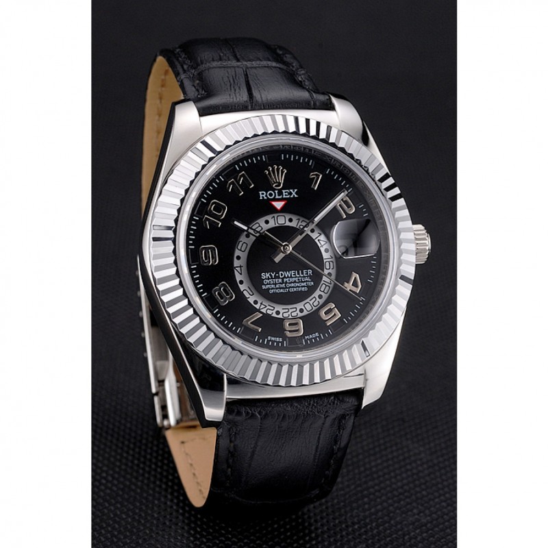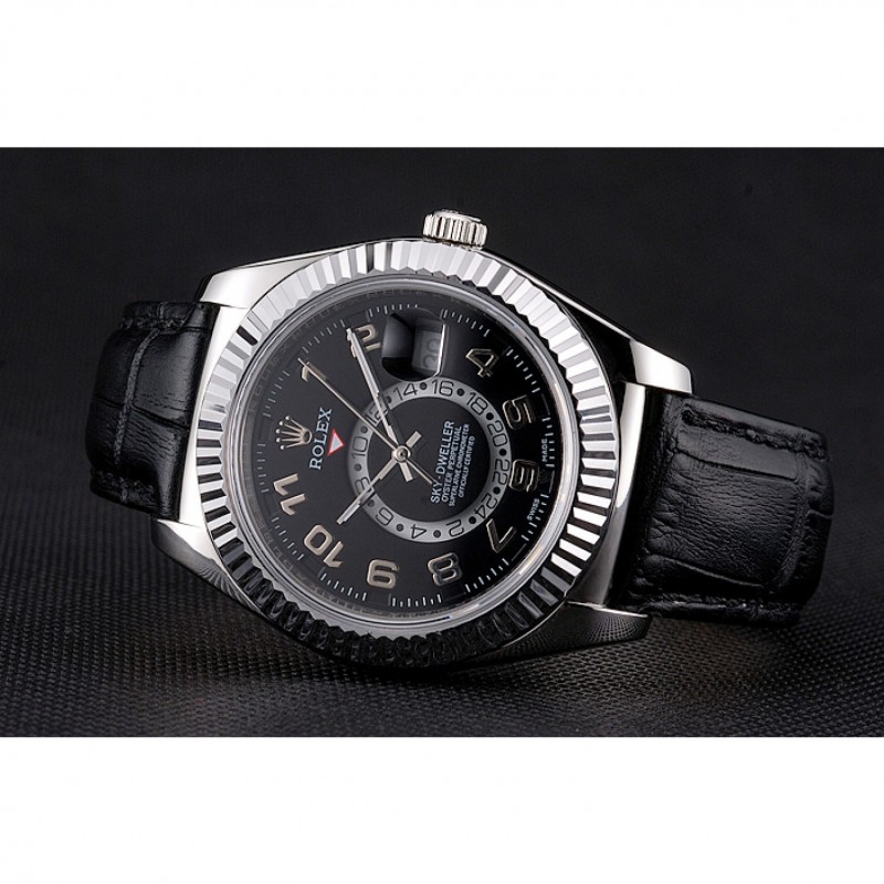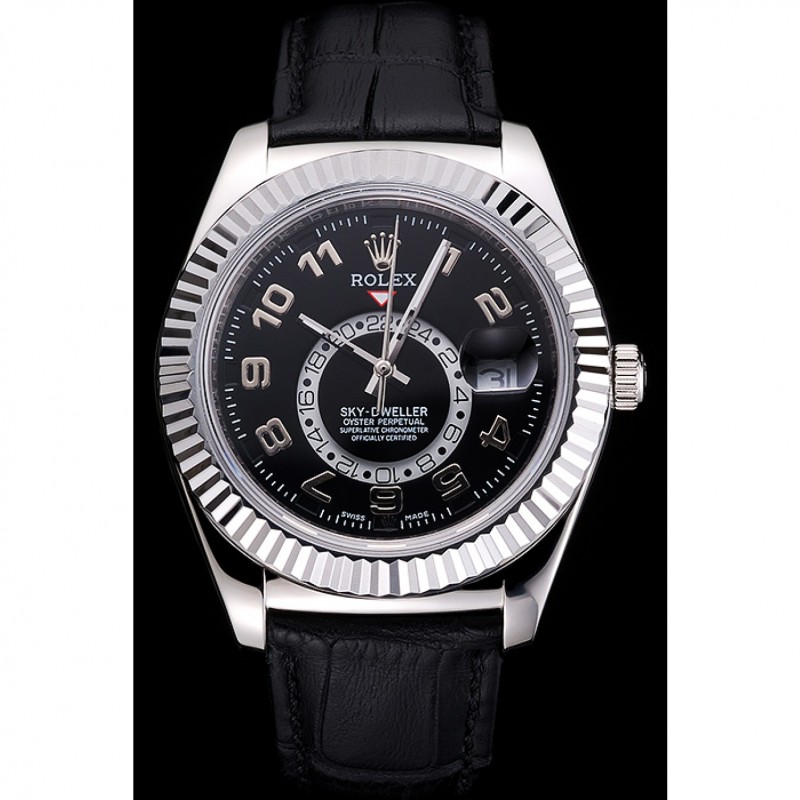 SS Rolex Sky Dweller Negro Dial correa de cuero caja de acero inoxidable Negro