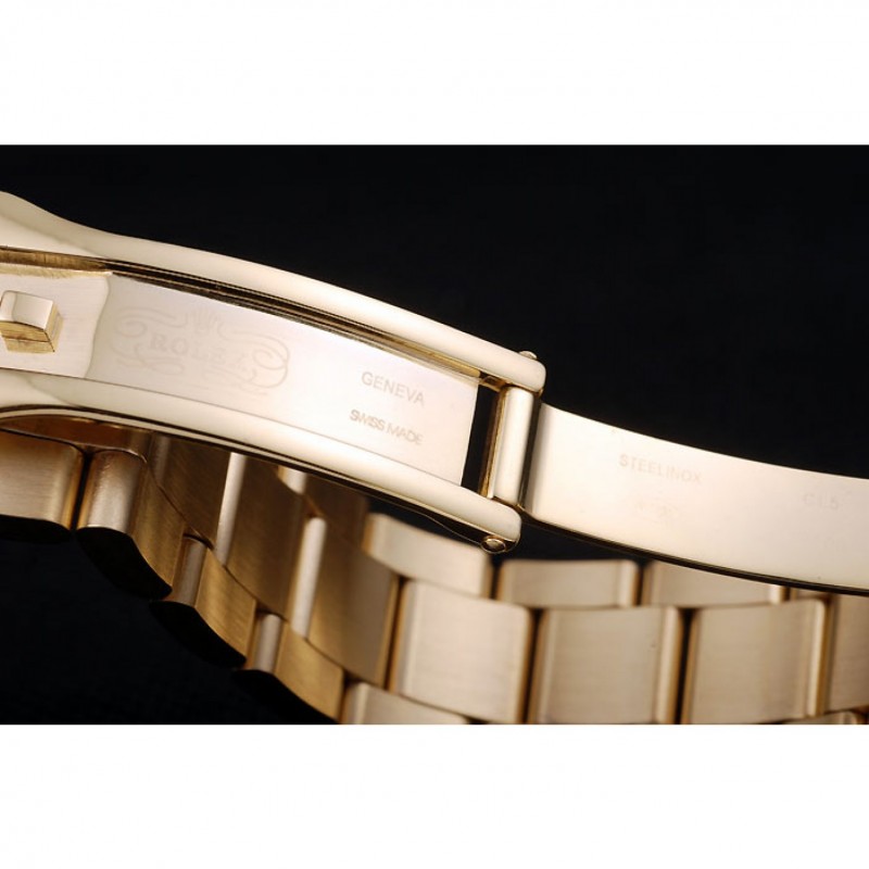 pulsera: amarillo-oro brazalete de eslabones con el grabado Rolex en el interior de la hebilla de despliegue y un logotipo de Rolex en la parte superior