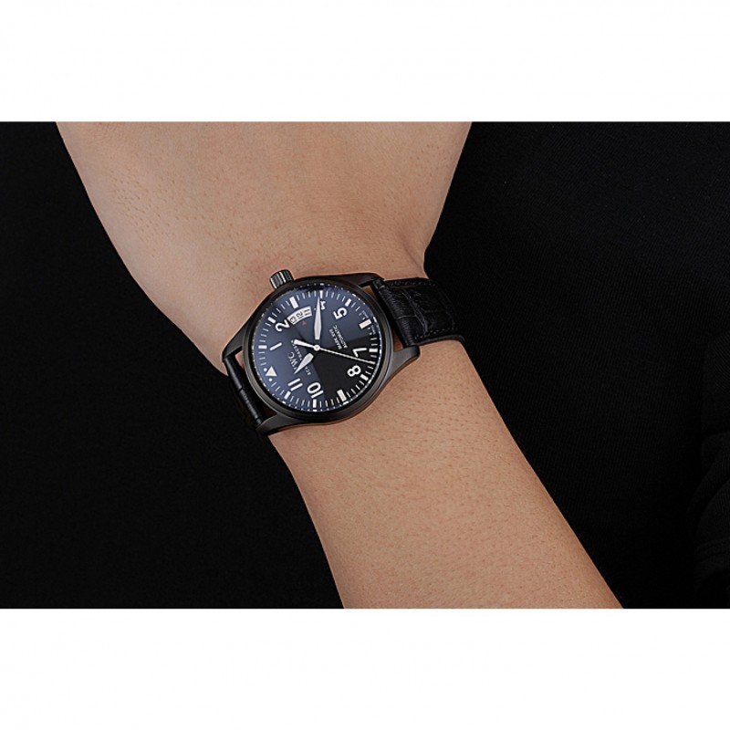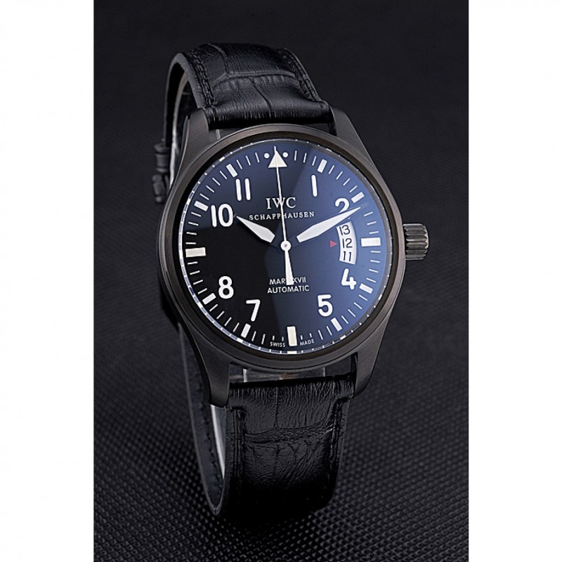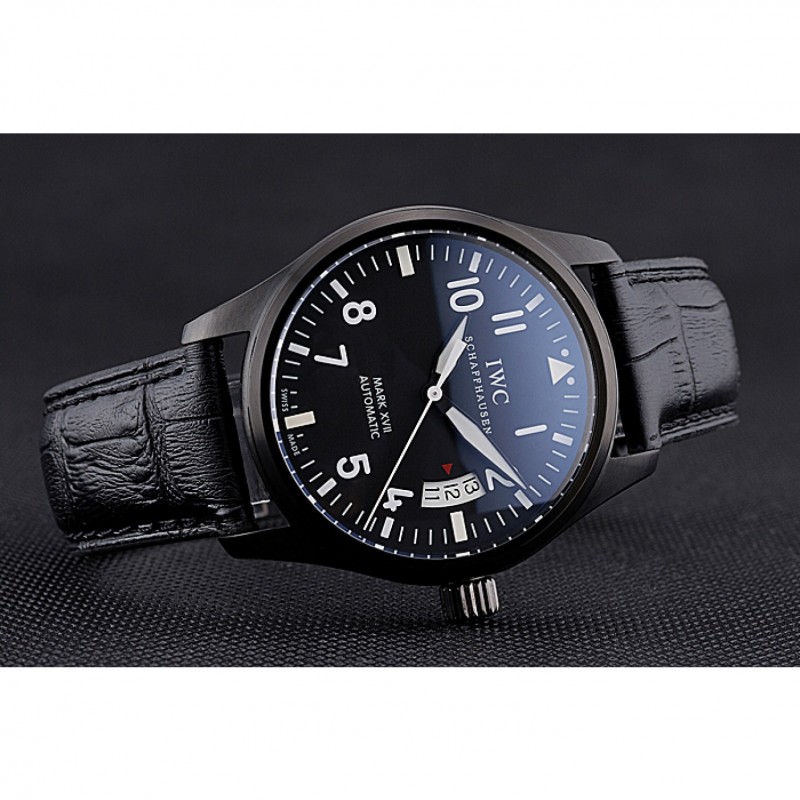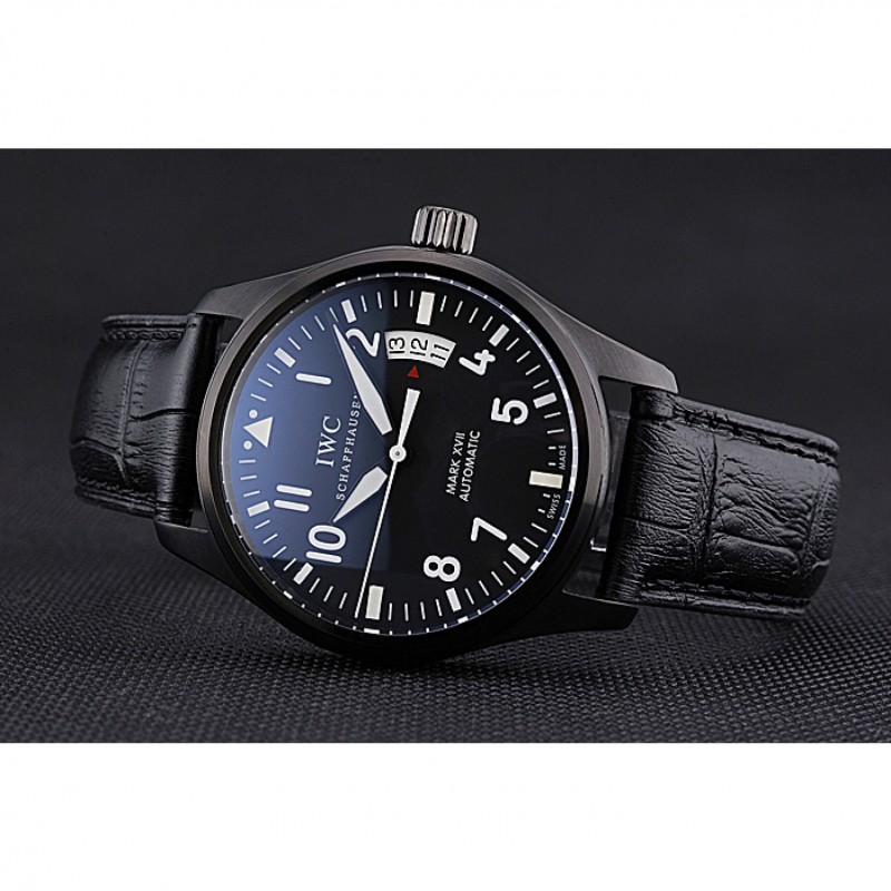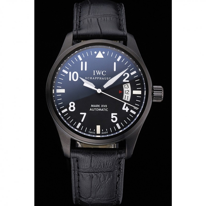 SS Suiza CBI Marcos XVII Negro caja de acero Dial Negro Cuero Negro pulsera 622667
