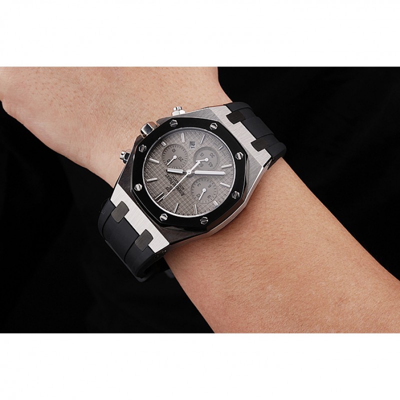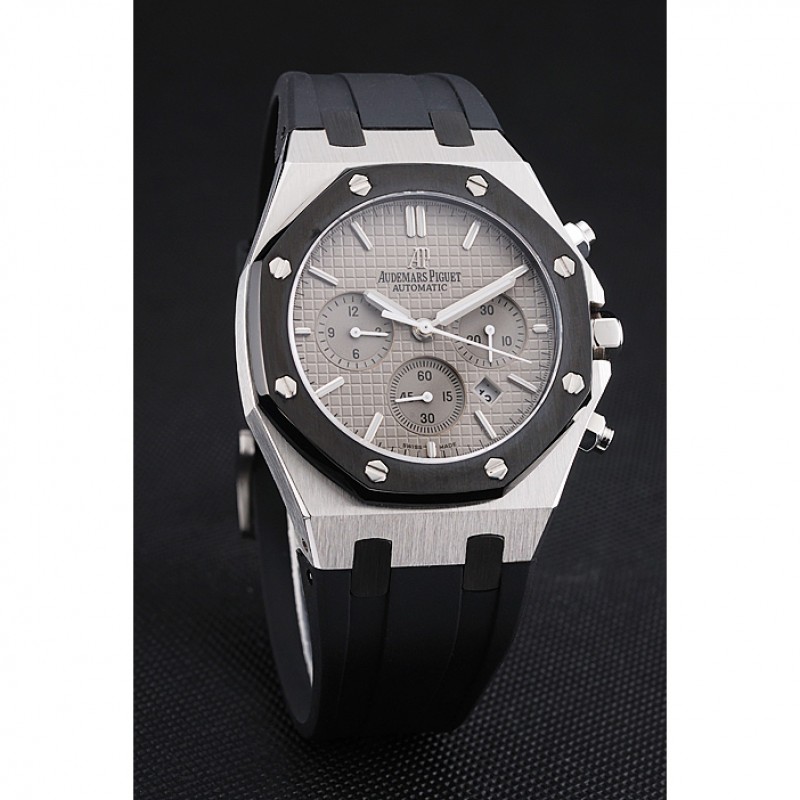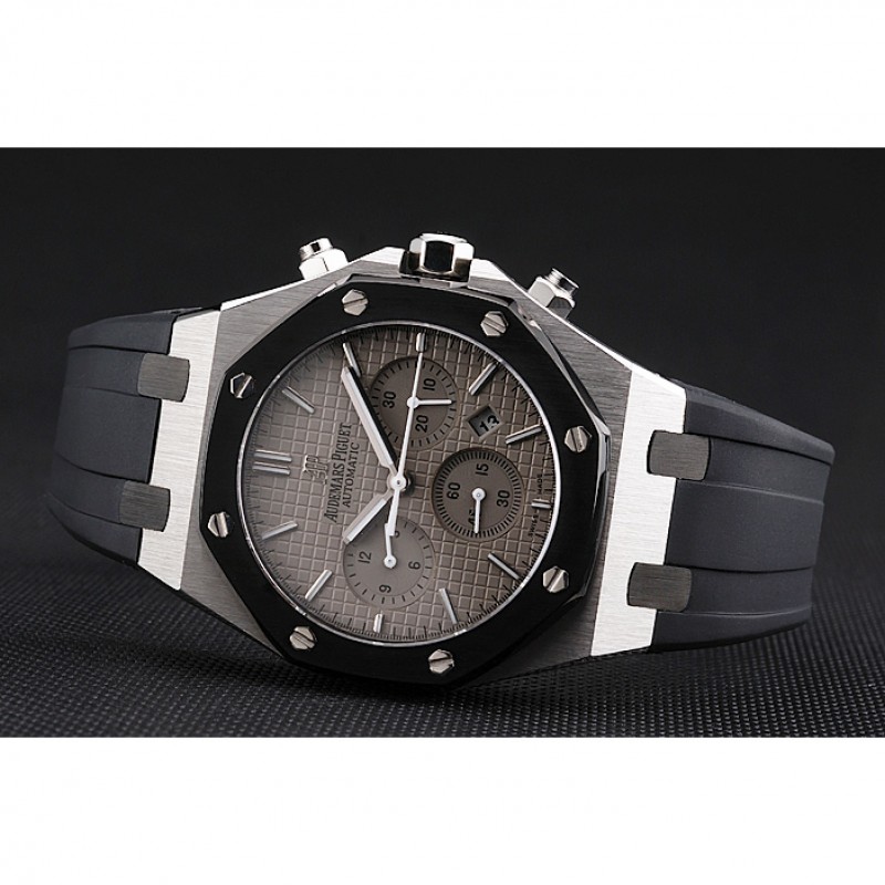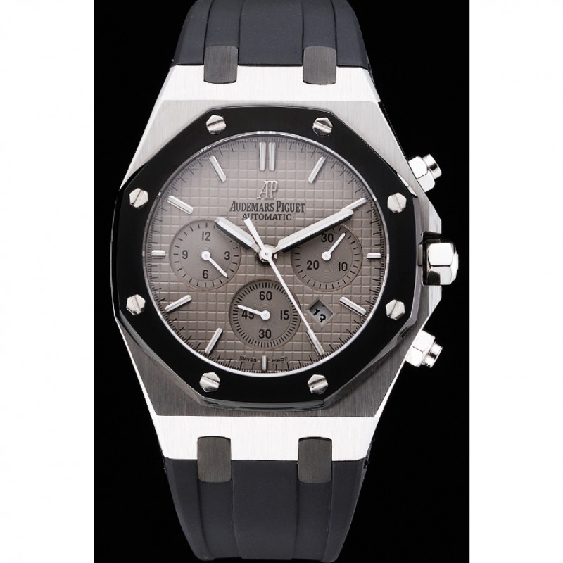 Suiza Audemars Piguet Royal Oak Cronógrafo Esfera Gris caja de acero inoxidable Negro correa de caucho 622866