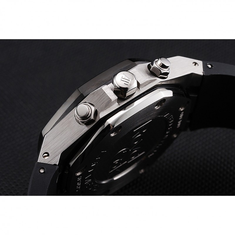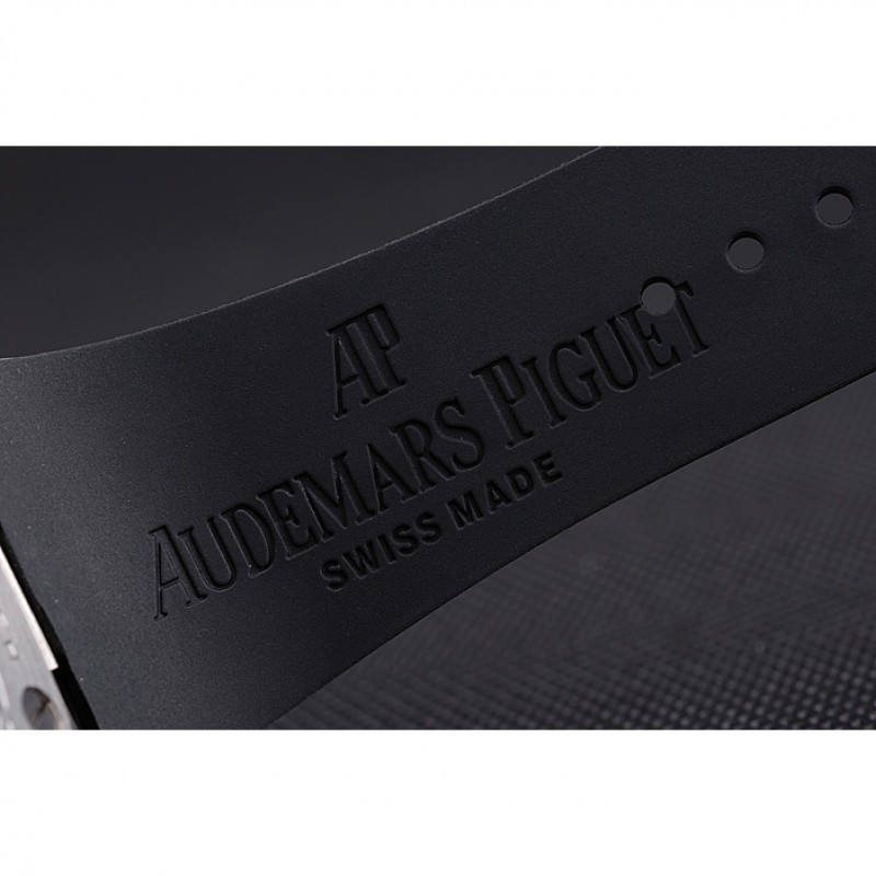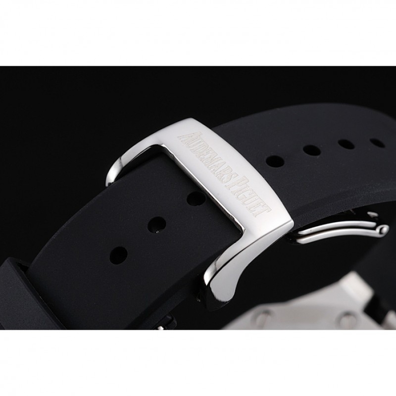 pulsera : correa de caucho negro en relieve calor Royal Oak offshore con Audemars Piguet grabado de acero inoxidable pulido plegable en cierre de gancho