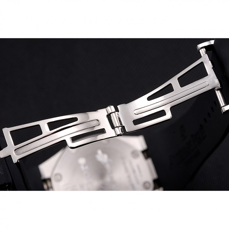 pulsera: correa de caucho negro en relieve calor Royal Oak offshore con Audemars Piguet grabado de acero inoxidable pulido plegable en cierre de gancho