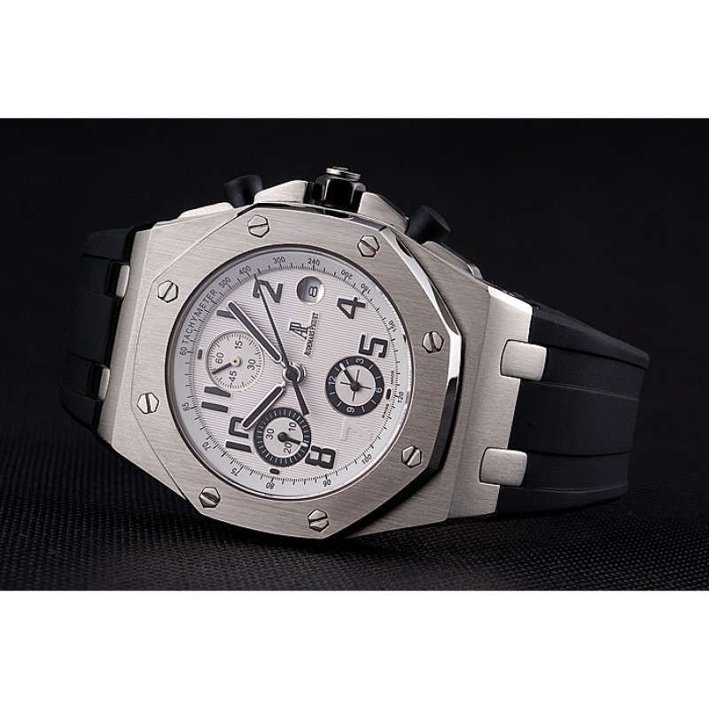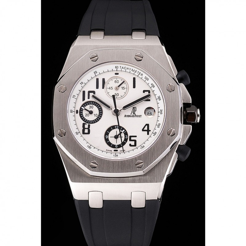 Suiza Audemars Piguet Royal Oak Offshore Esfera Blanca, caja de acero inoxidable Negro correa de caucho 622853