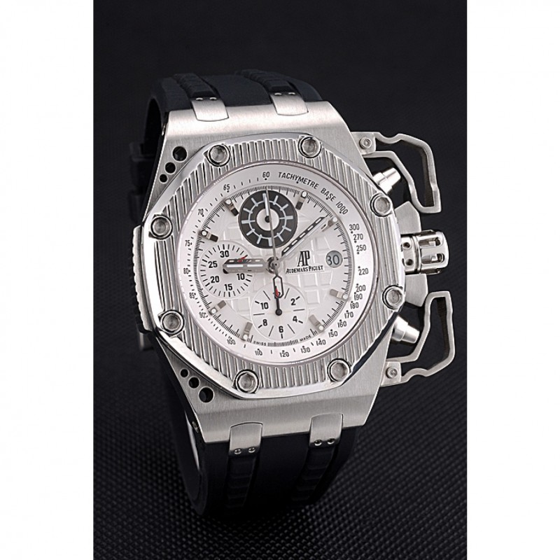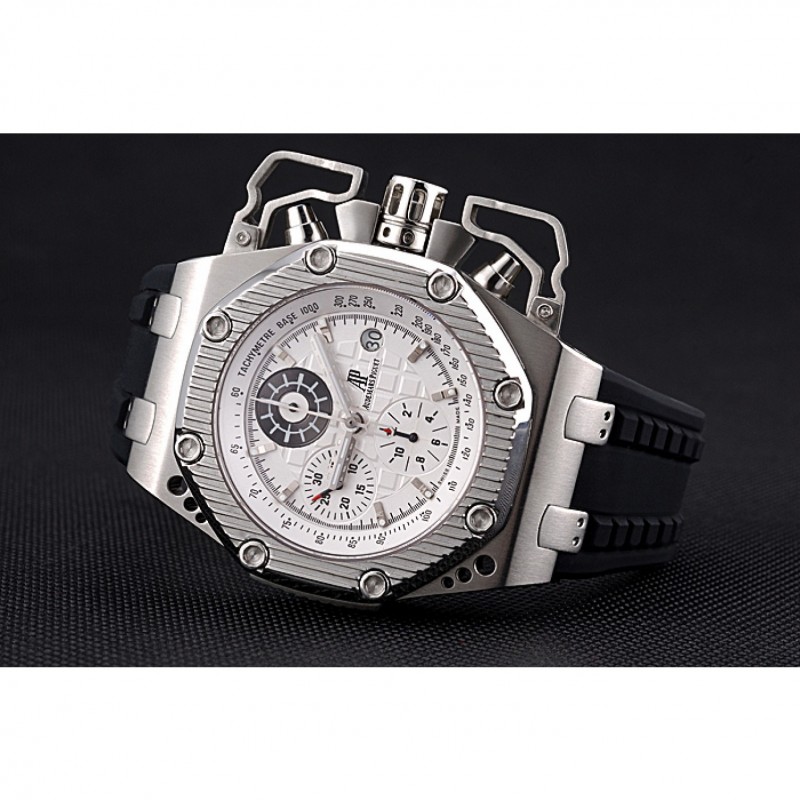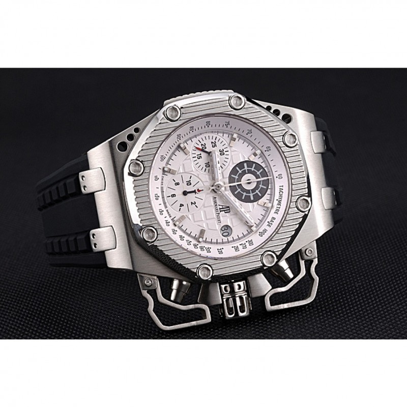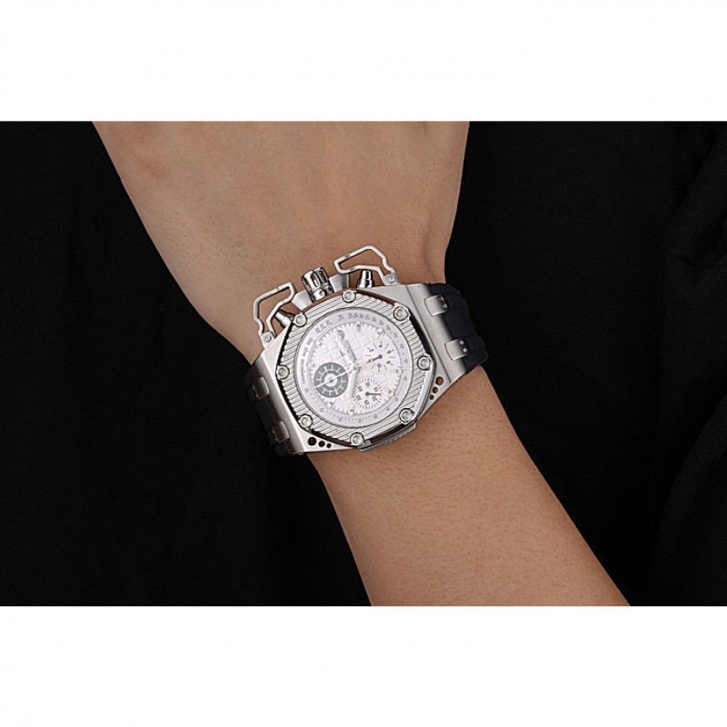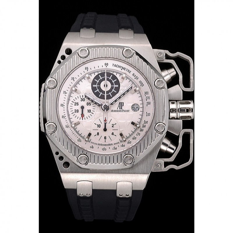 Suiza Audemars Piguet Royal Oak Offshore Survivor Esfera Blanca Caso de acero inoxidable Negro correa de caucho 622859