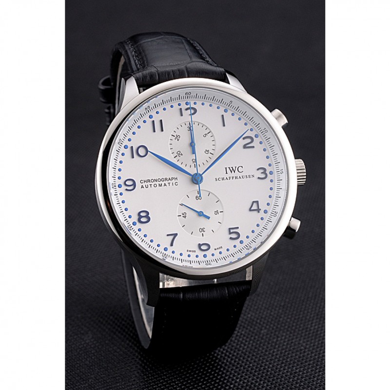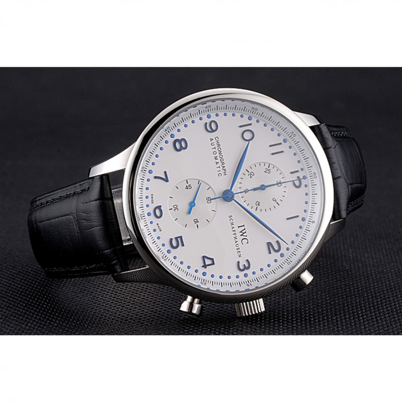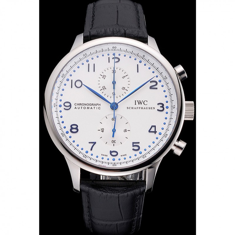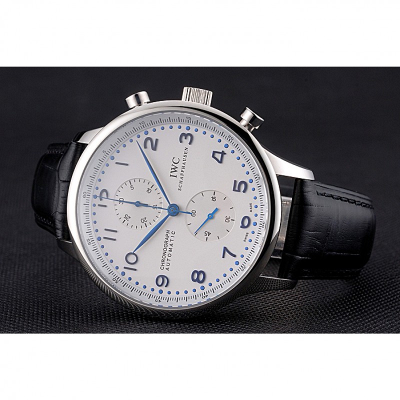 Suiza CBI Portugieser De Reserva Blanco Dial correa de cuero caja de acero inoxidable Negro