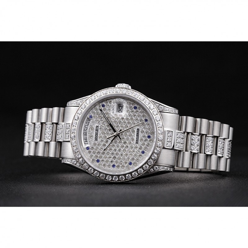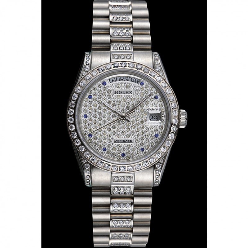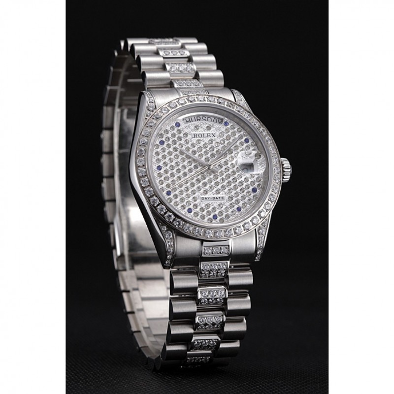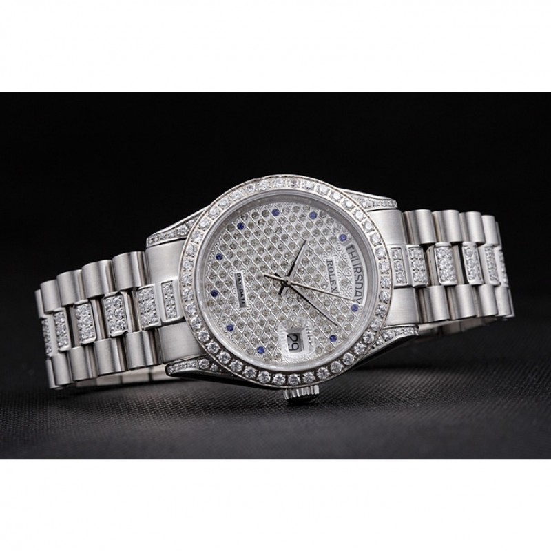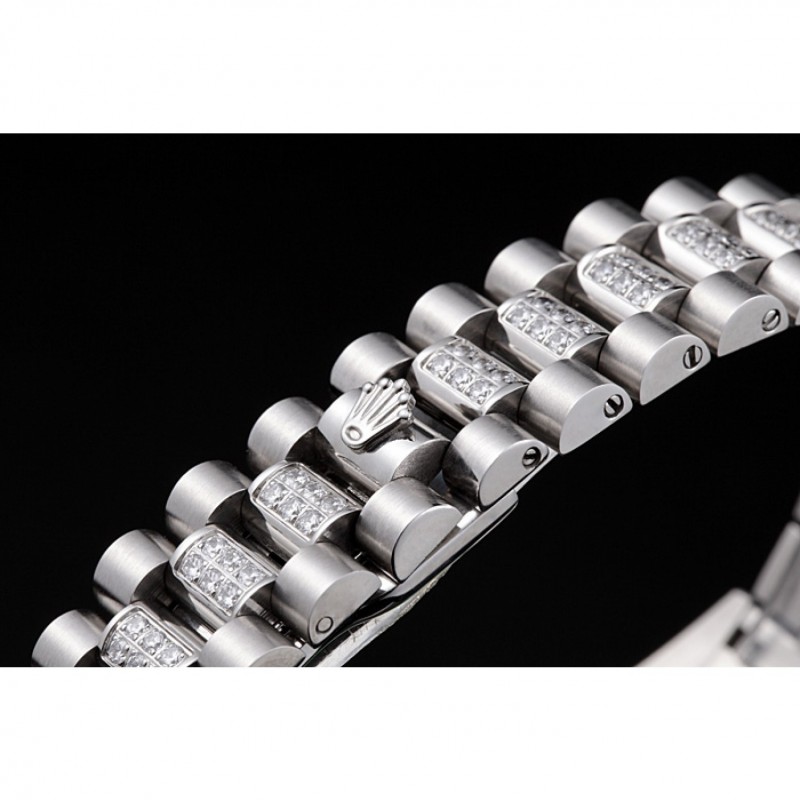 pulsera: incrustaciones de diamantes pulidos de eslabones de acero inoxidable pulsera con calado Rolex hebilla de despliegue logotipo