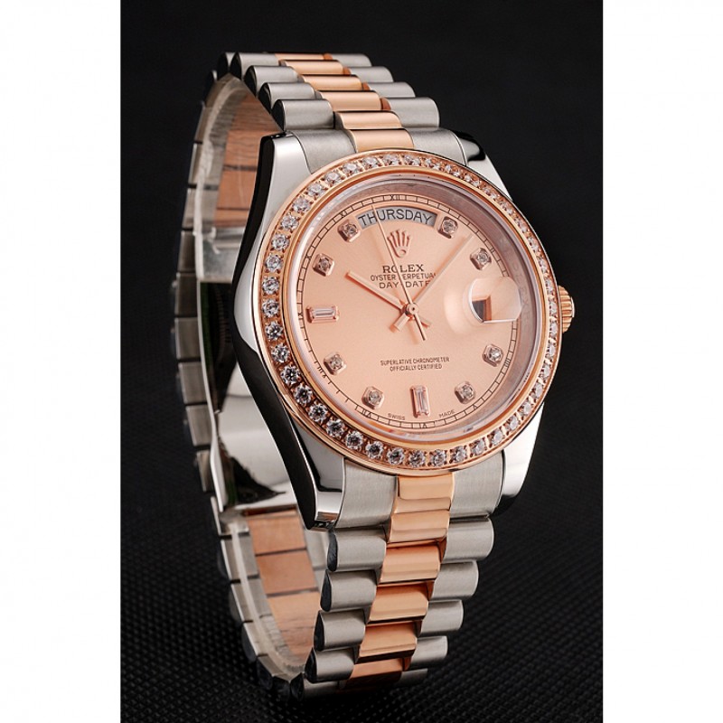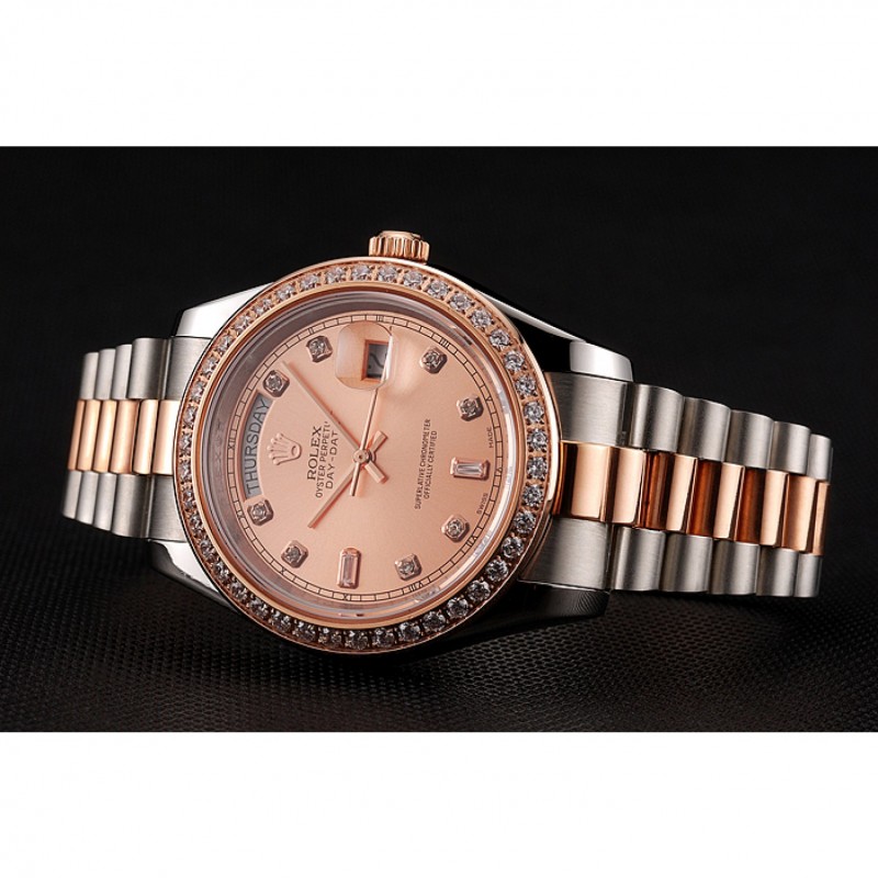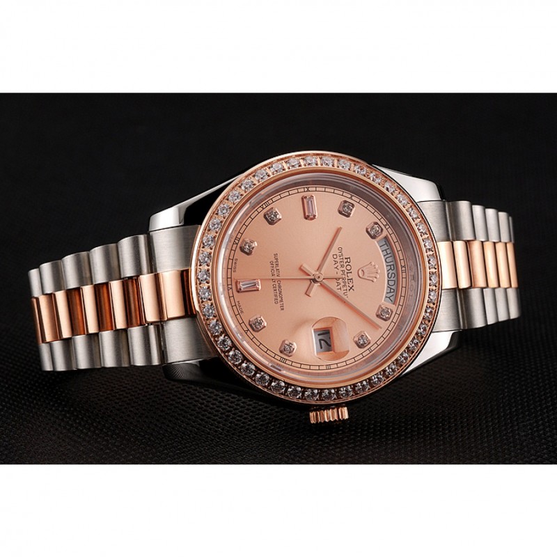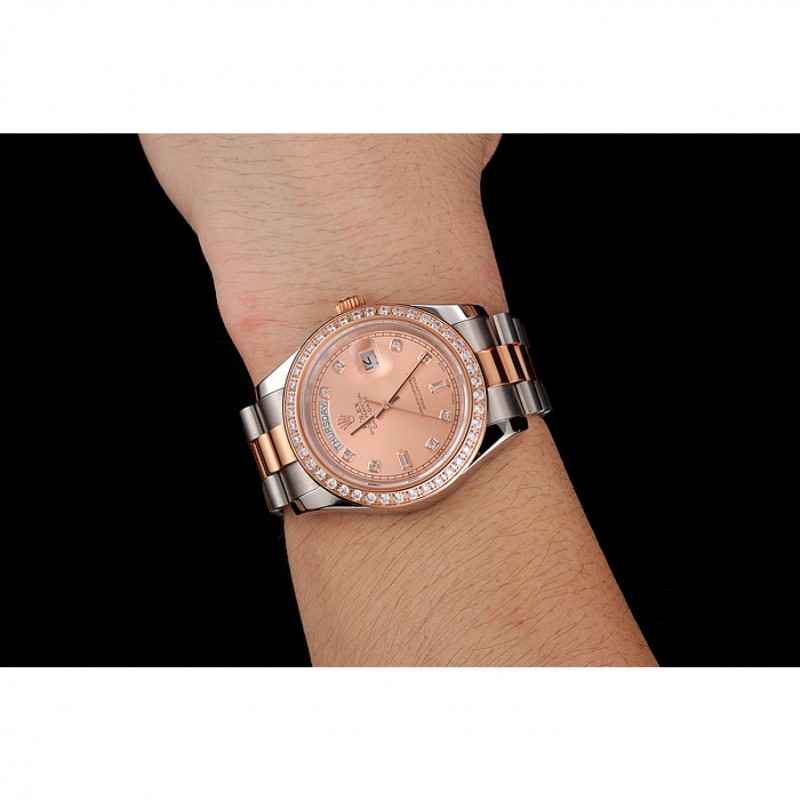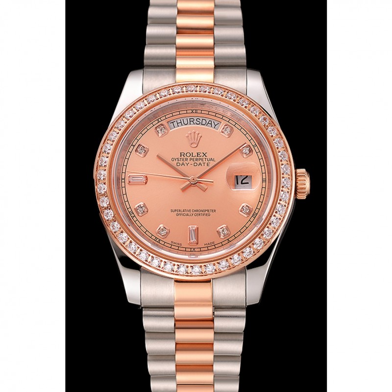 Suiza de relojes de diamantes en oro rosa Bisel y pulsera de acero de Staineless 1454107