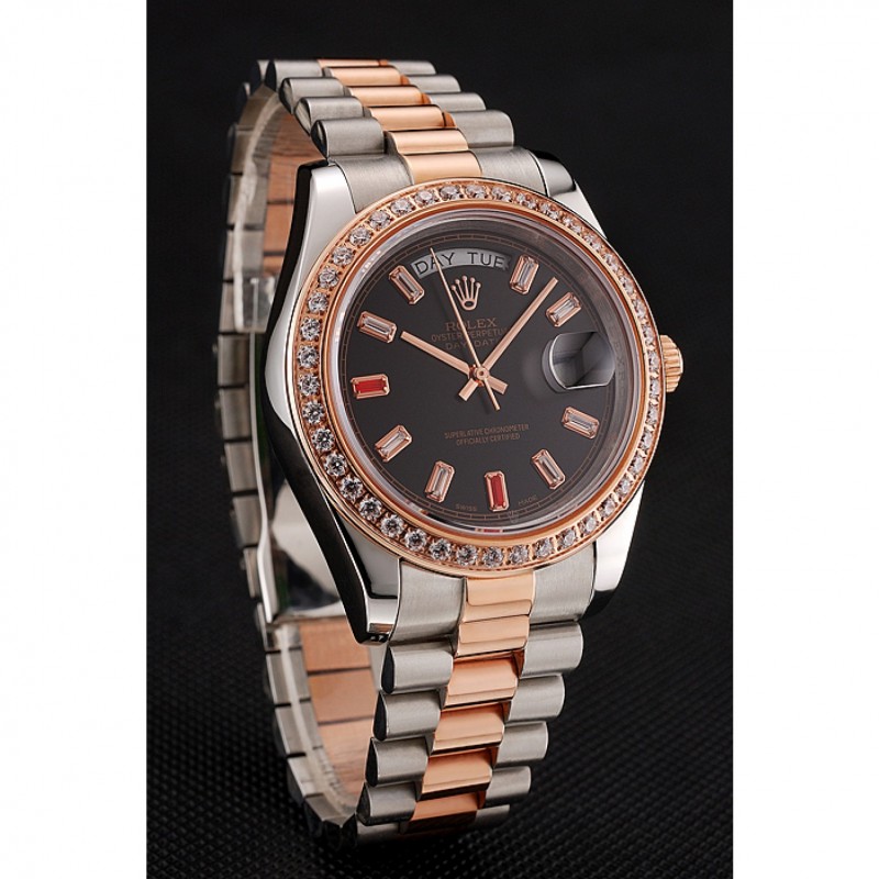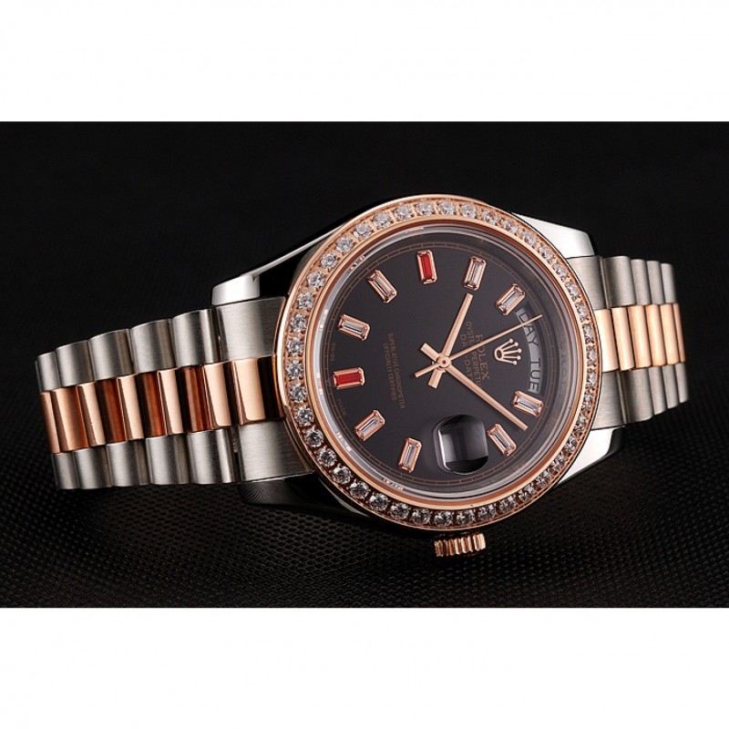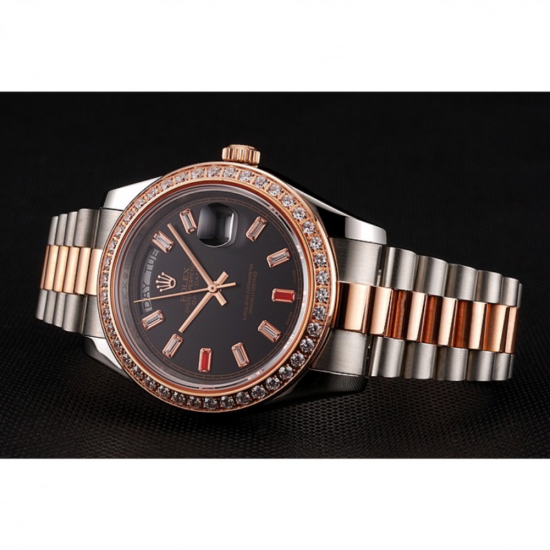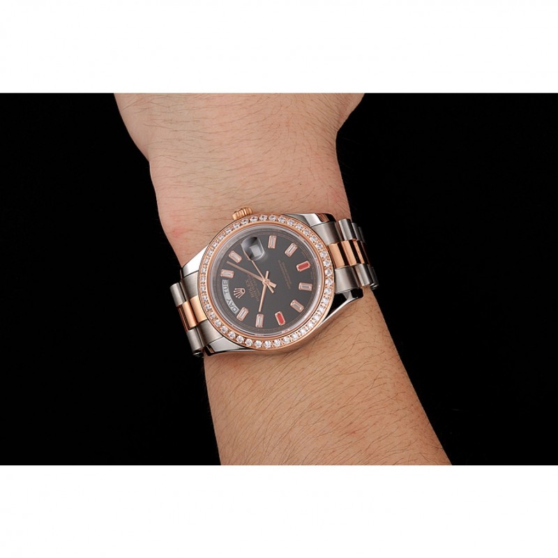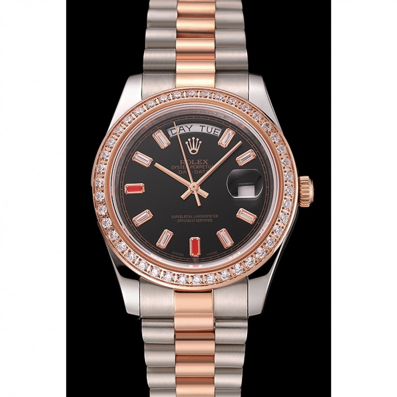Suiza de relojes de diamantes y rubíes Negro Dial pulsera de oro rosa y acero de Staineless 1454106