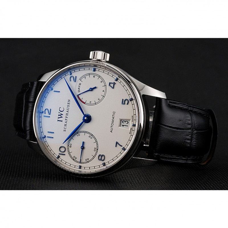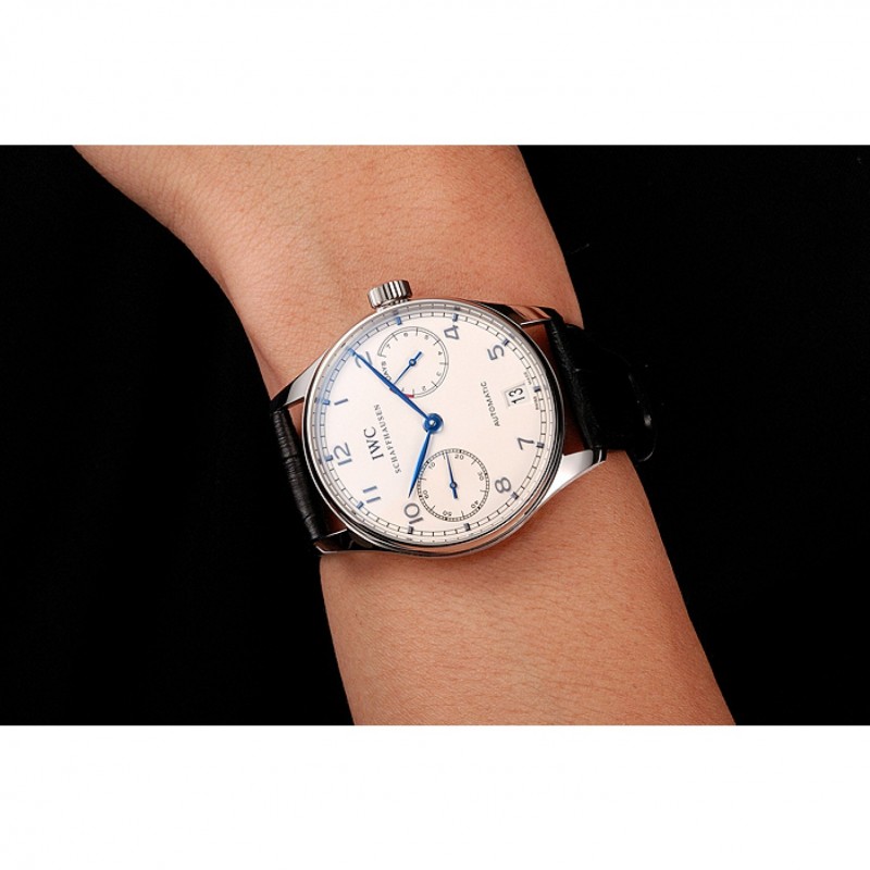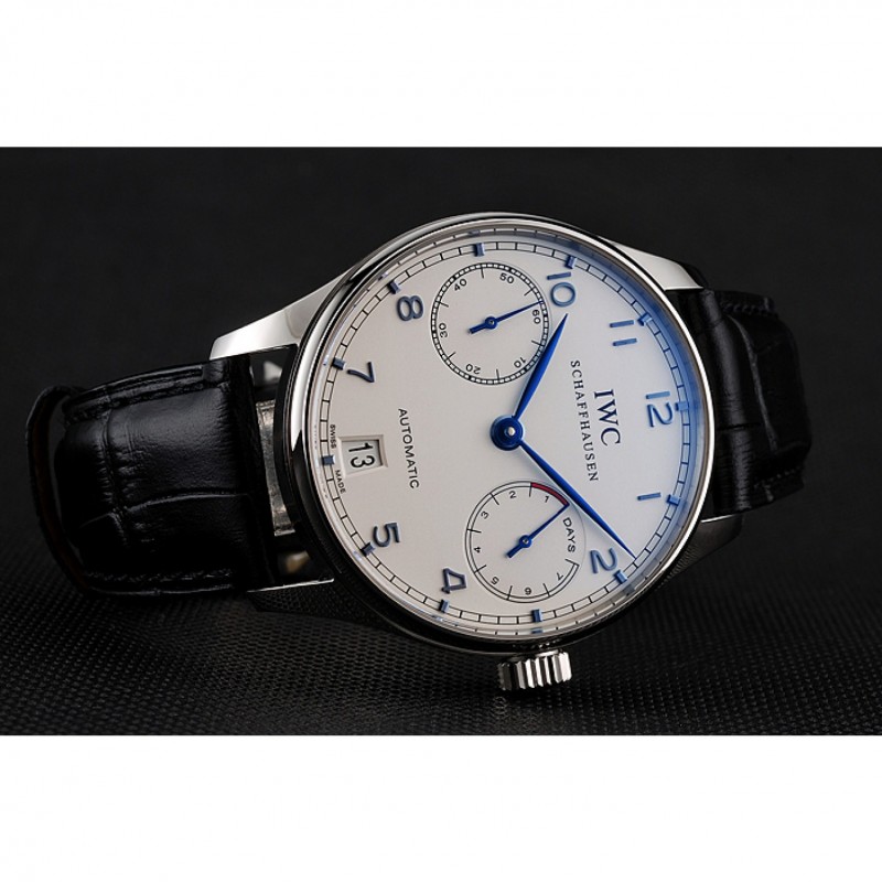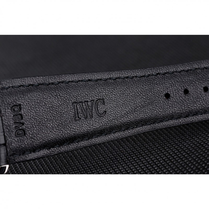 Suiza IWC Portugués Blanco Dial de plata azul numerales Caso Negro Pulsera de cuero 1453913