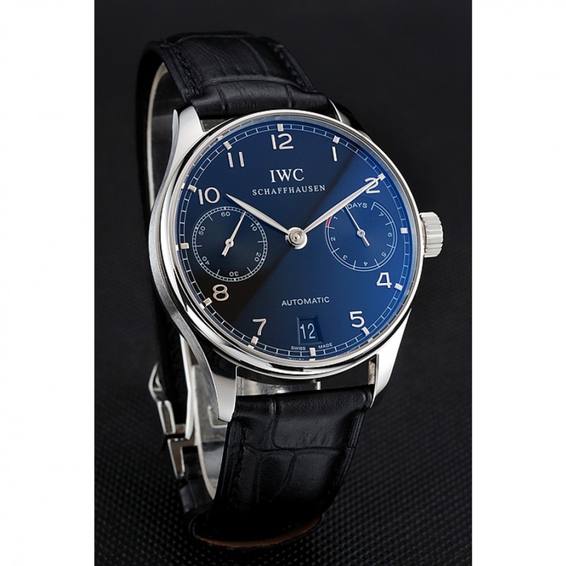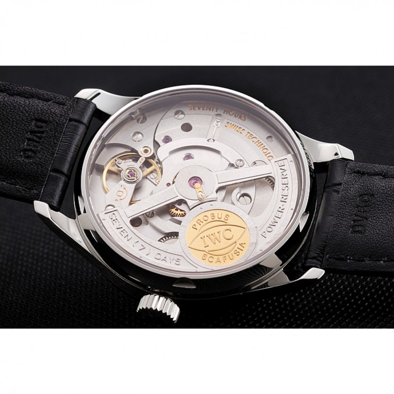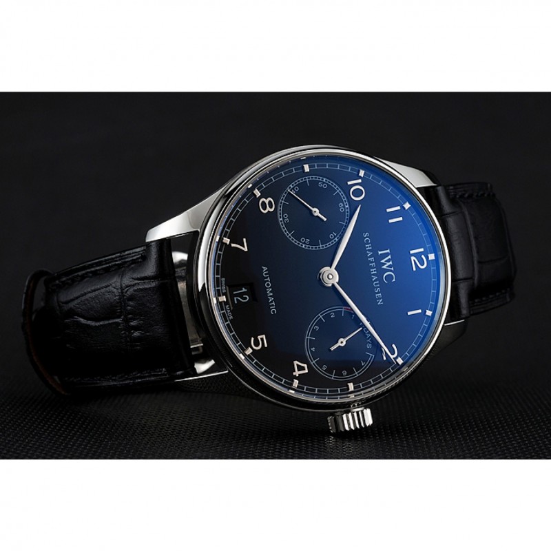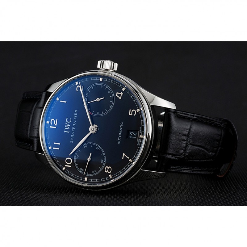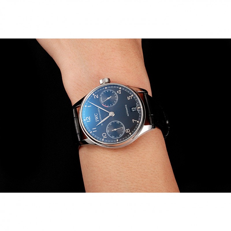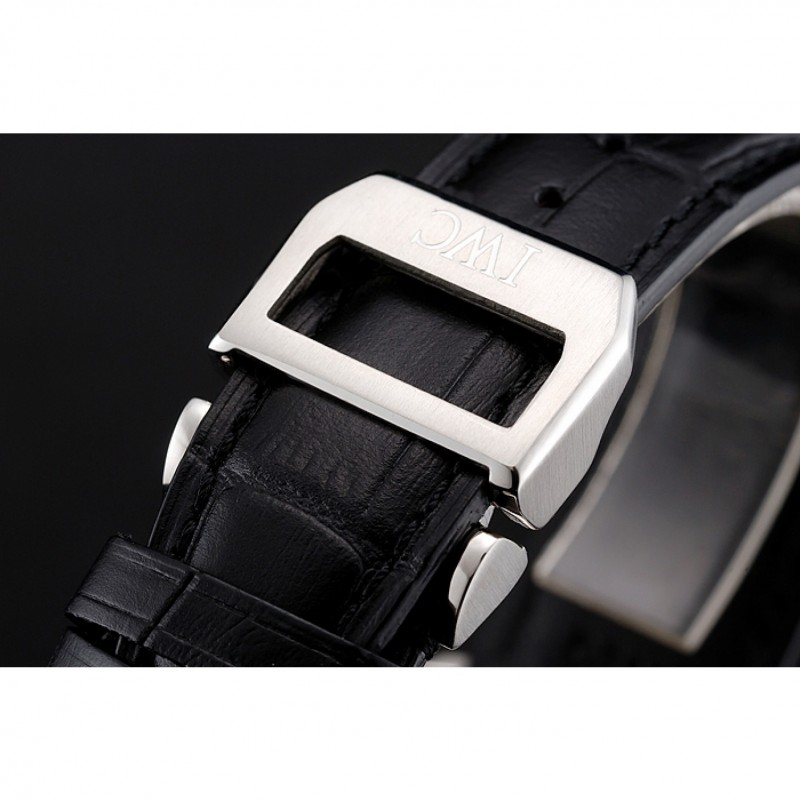 Suiza IWC Portugués Negro Dial Caso Negro de plata pulsera de cuero 1453903