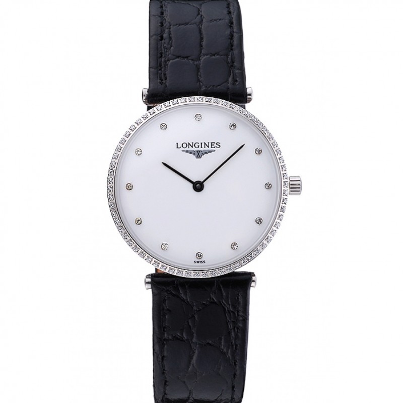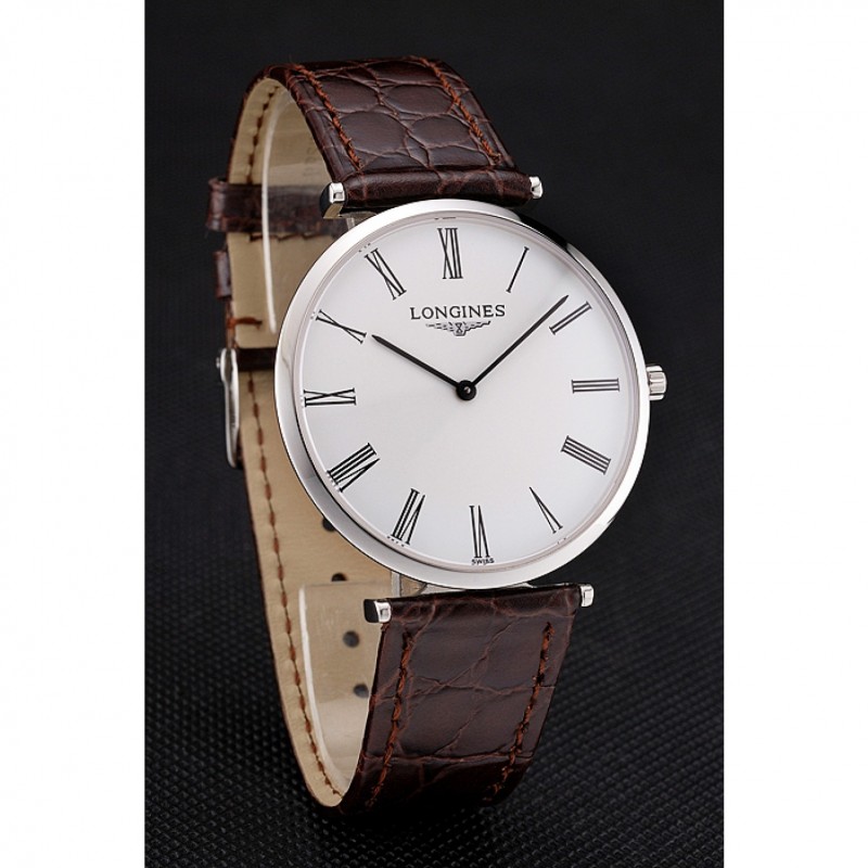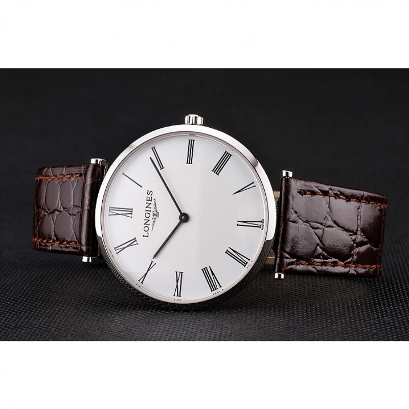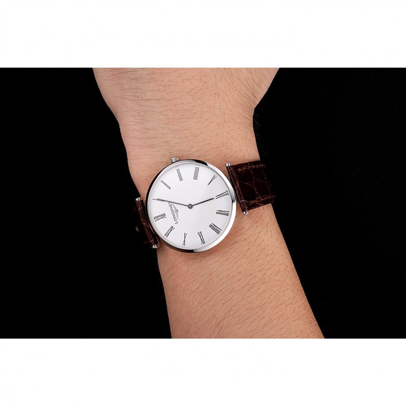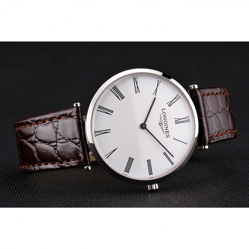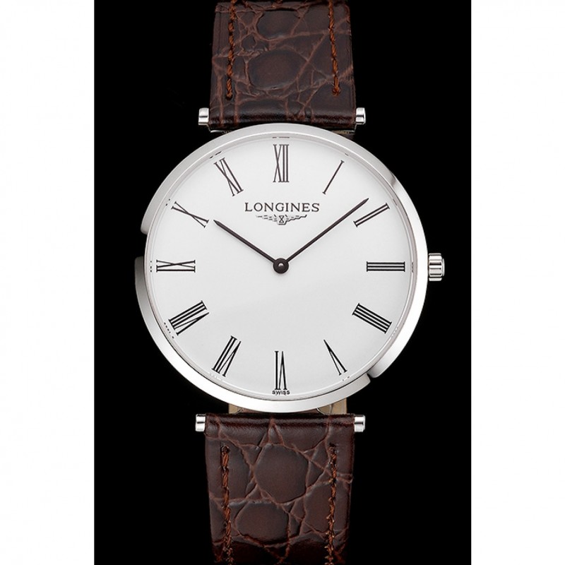 Suiza Longines Grande Classique Blanco Dial correa de cuero de la caja de acero inoxidable de los números romanos de Brown