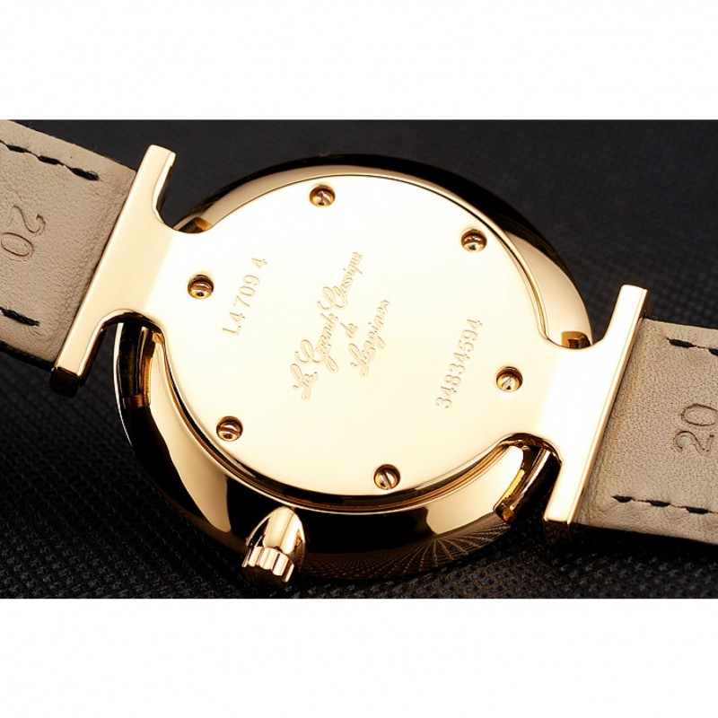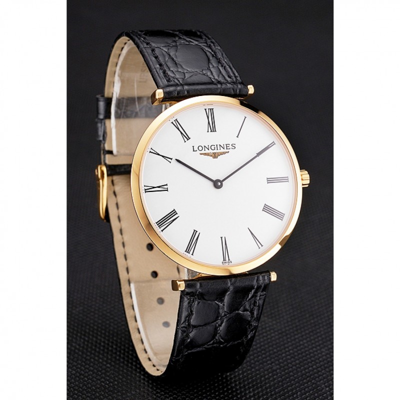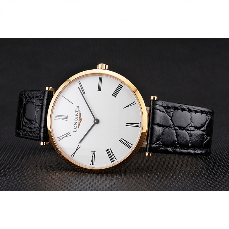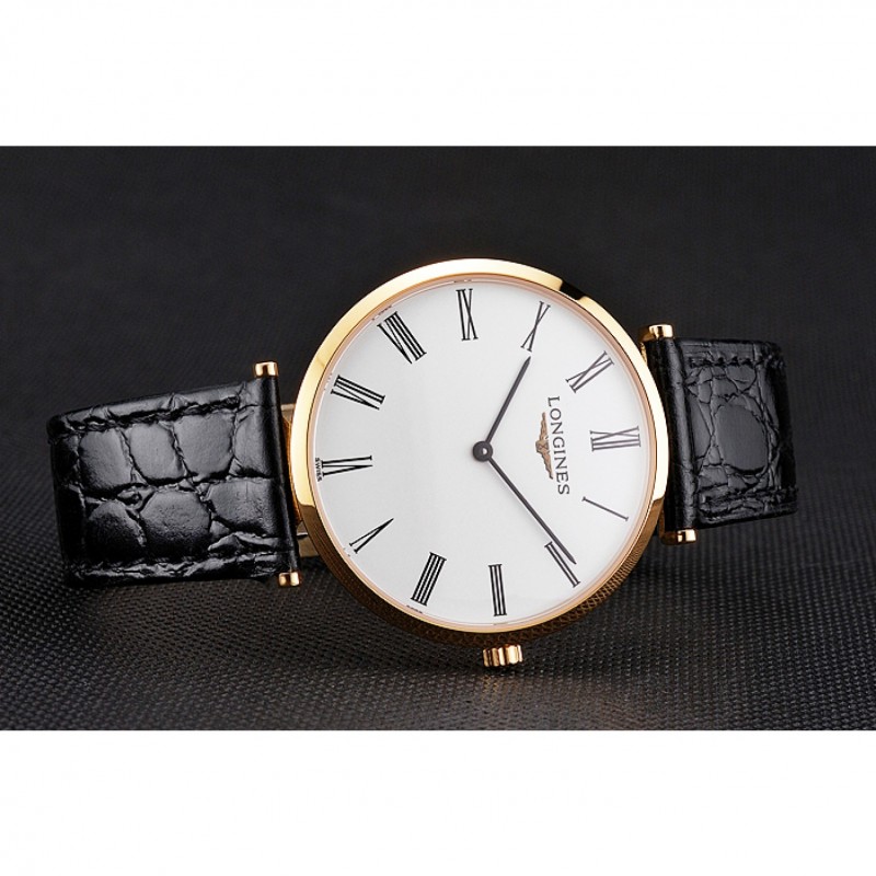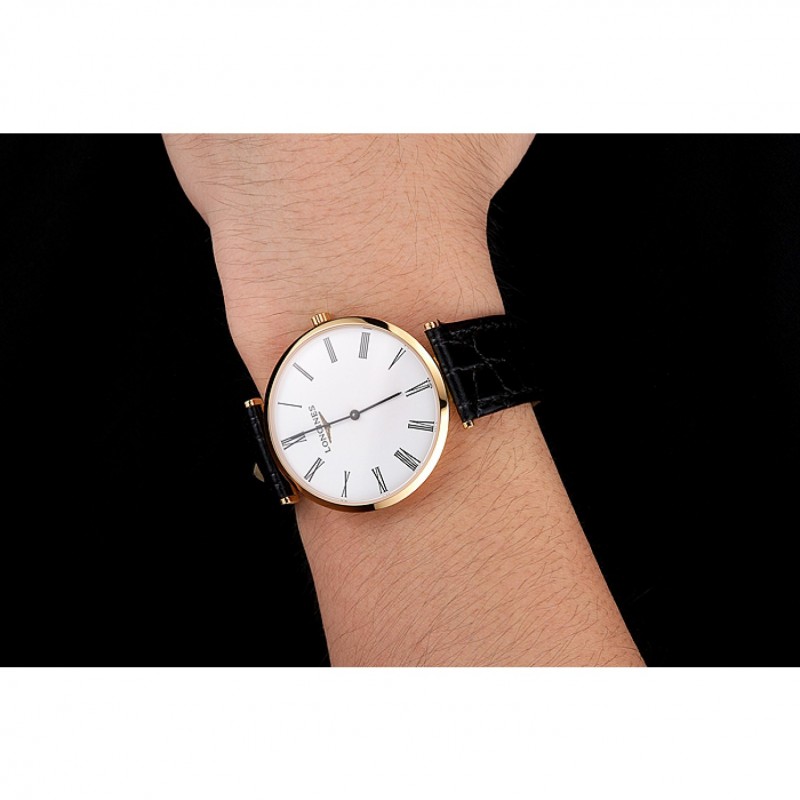 Suiza Longines Grande Classique Blanco Dial correa de cuero de los números romanos Caja Oro Negro