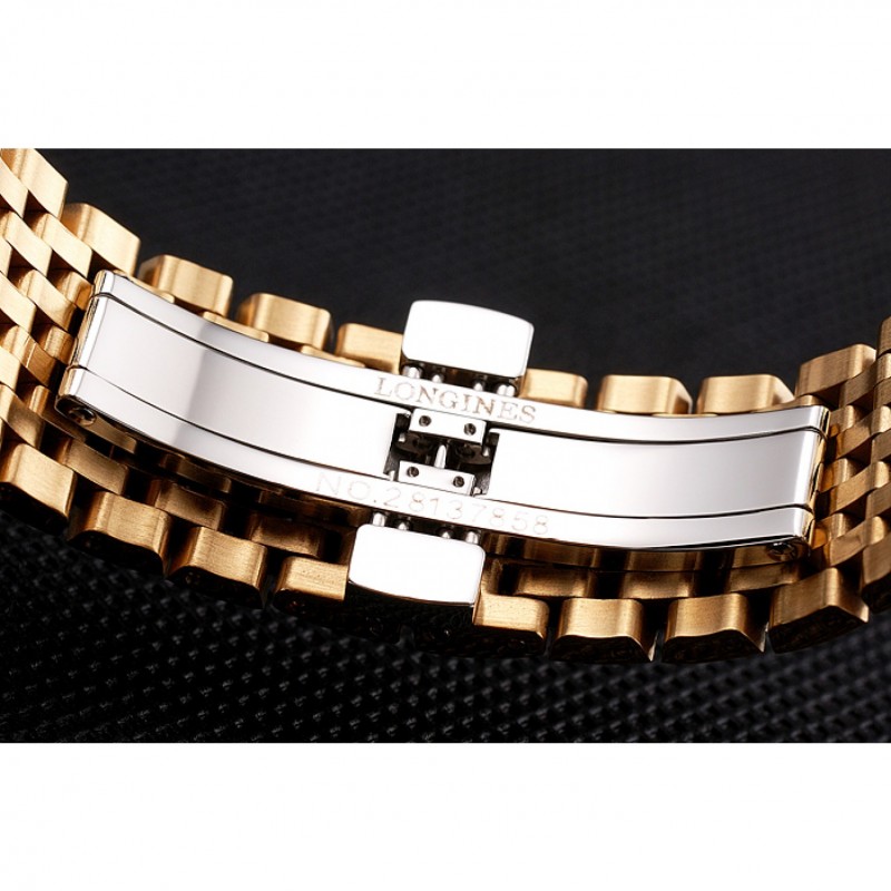 pulsera: 18k oro amarillo plateado brazalete de eslabones con Longines y cierre oculto logotipo grabado empuje de liberación