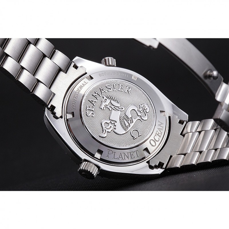 Volver: de acero inoxidable cepillado complemento de vuelta con Seamaster logo grabado