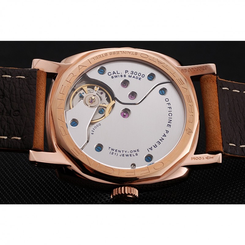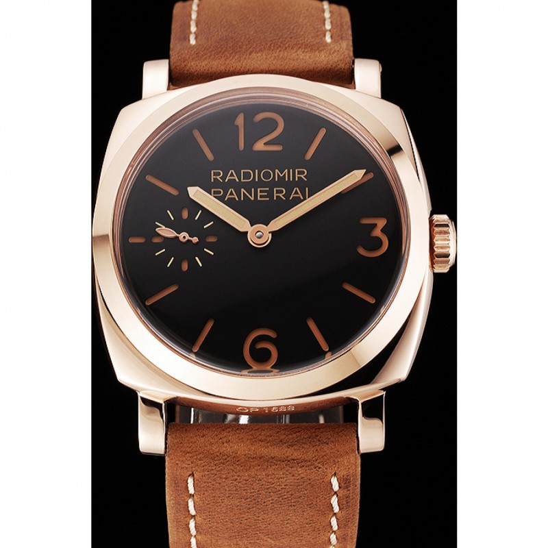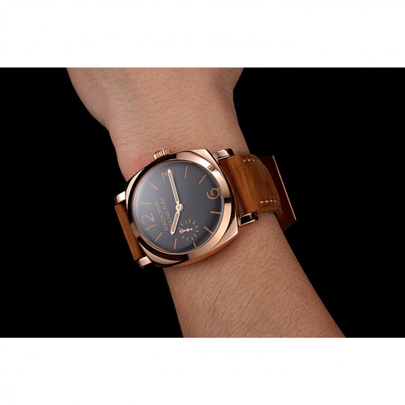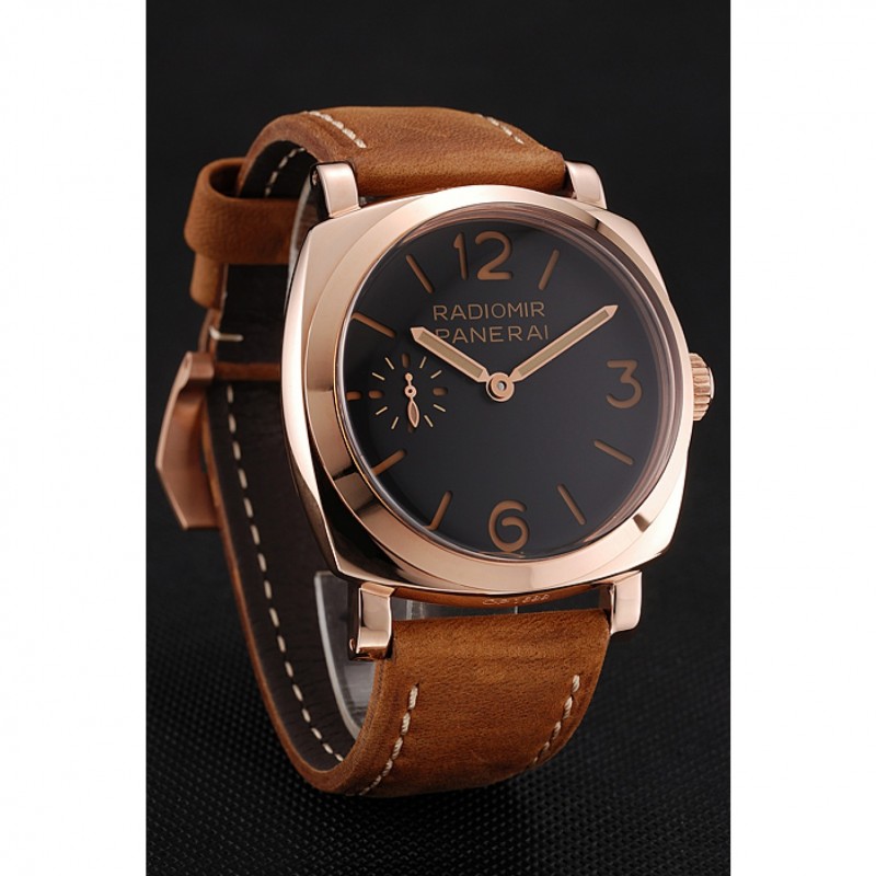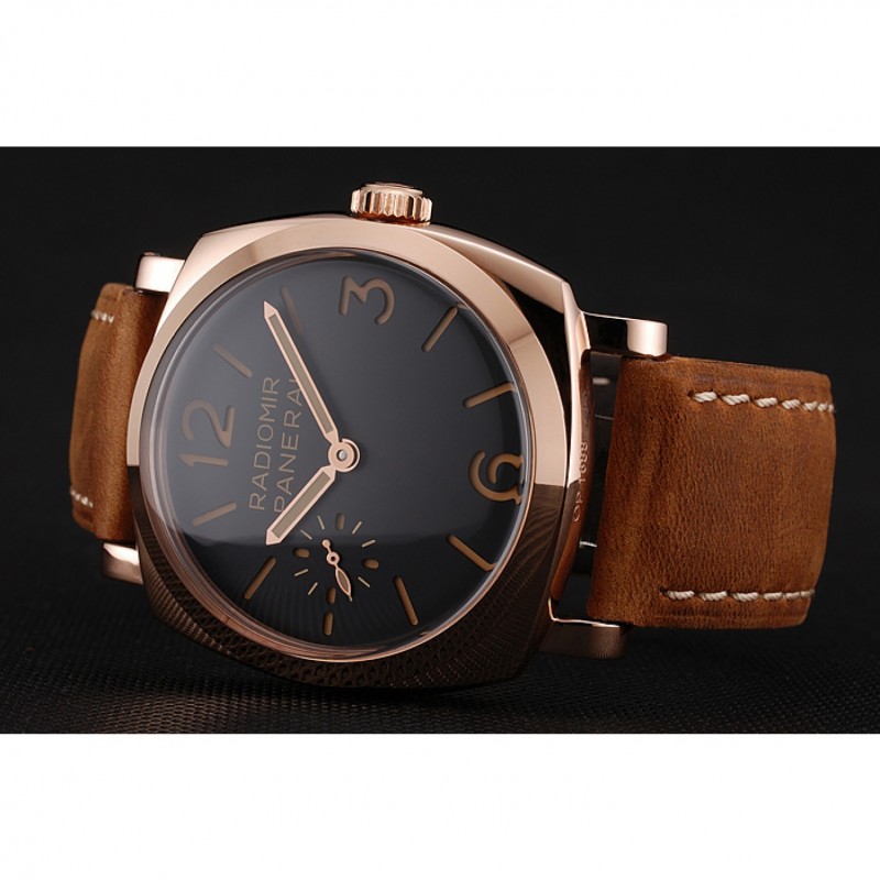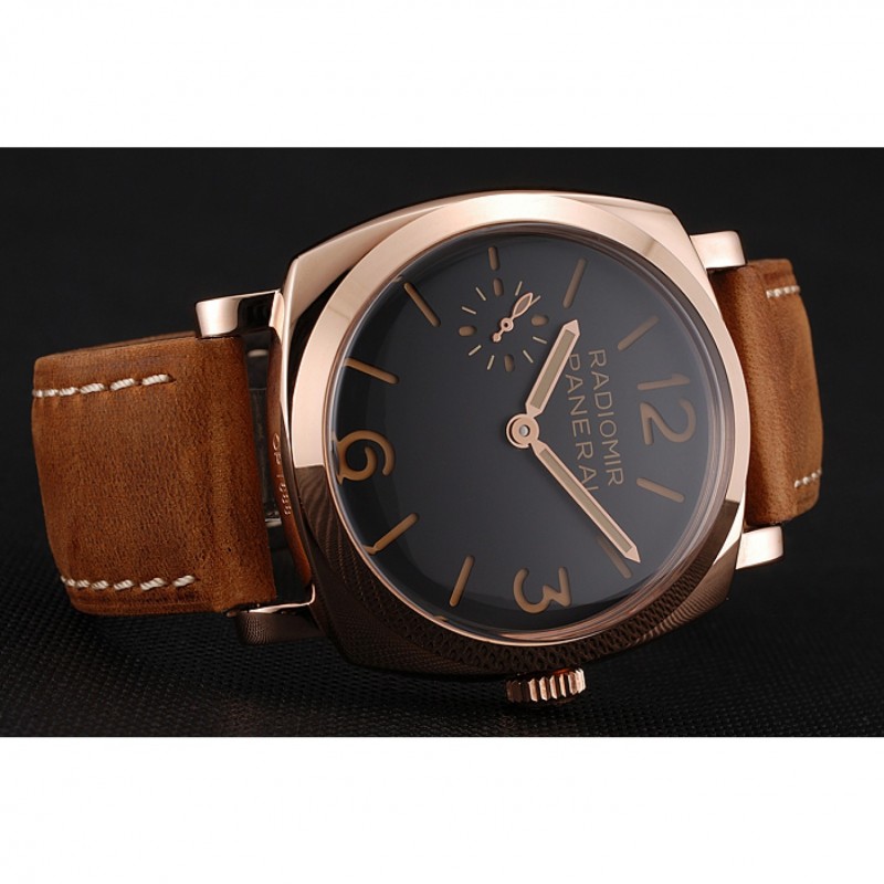 Suiza Panerai 1940 Negro Dial correa de cuero de la caja de oro rosa Gamuza marrón 1453844