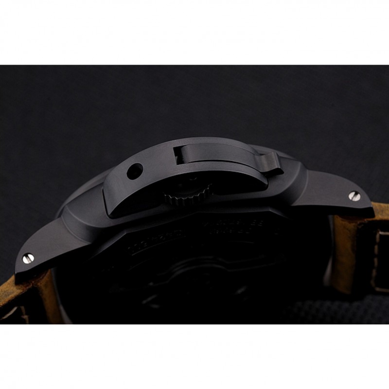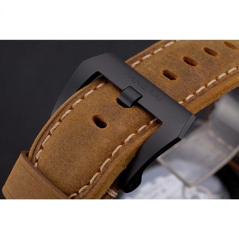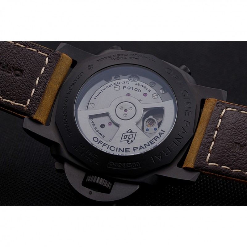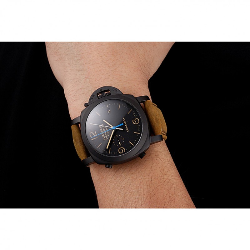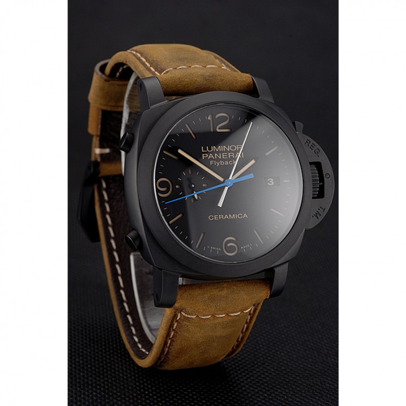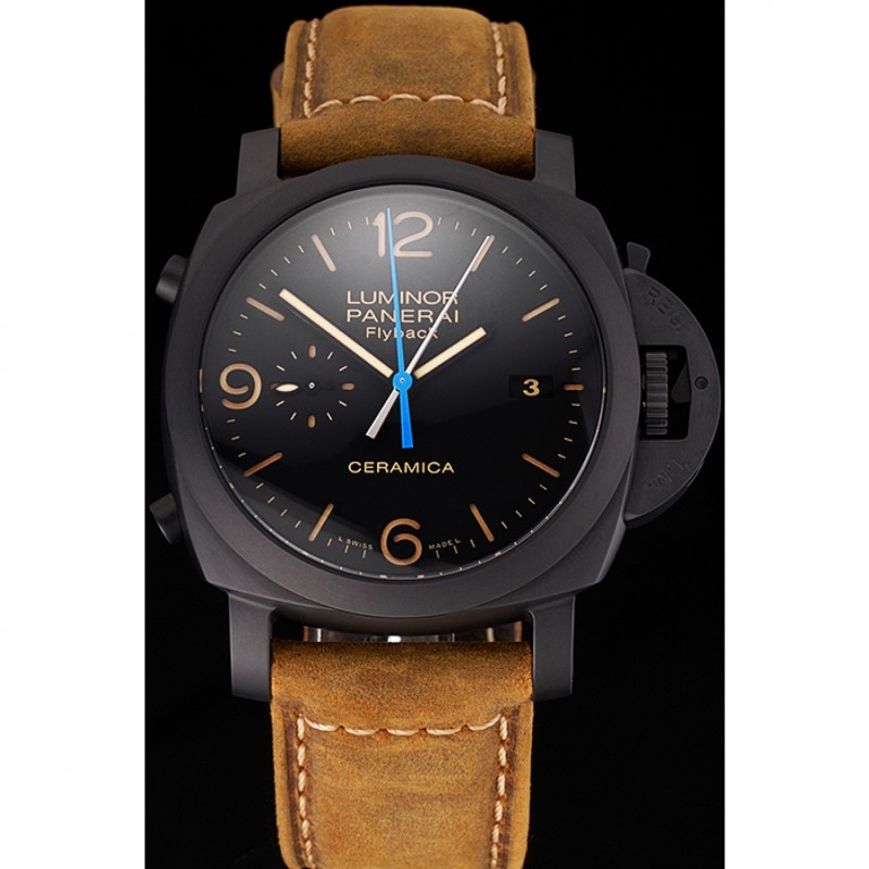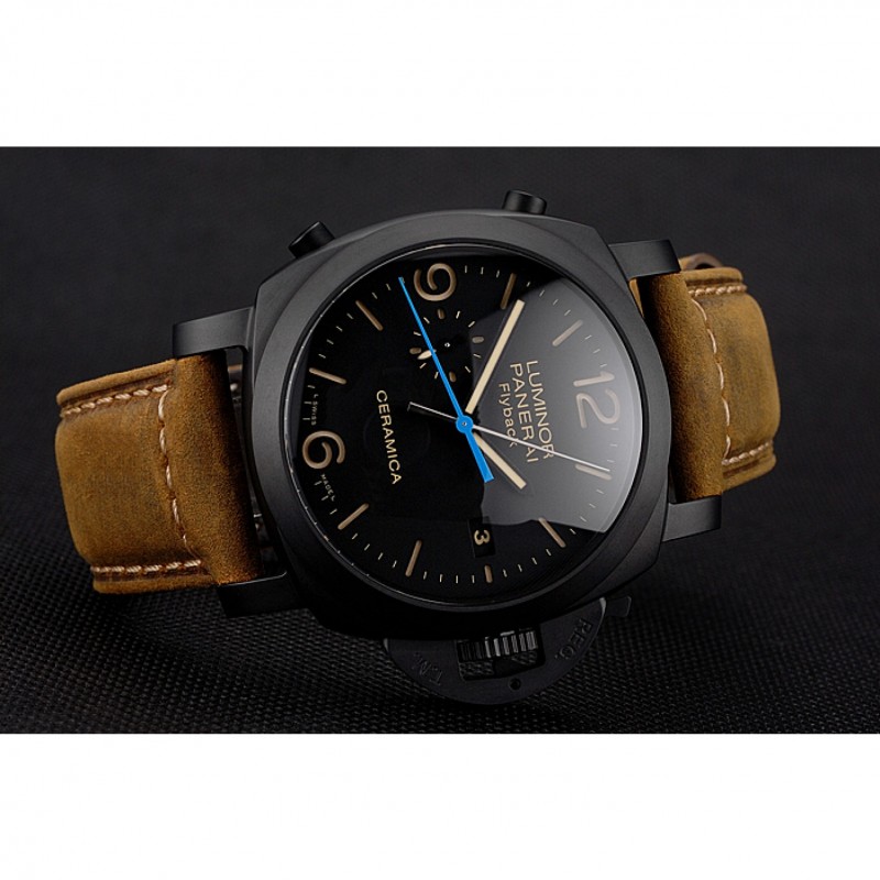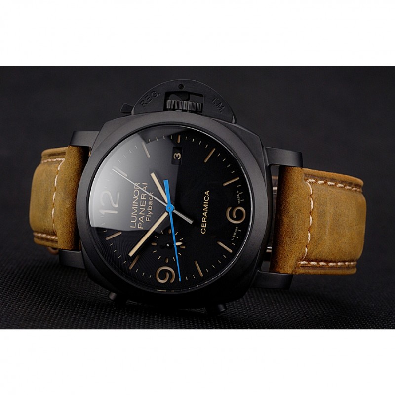 Suiza Panerai Luminor Flyback cronógrafo Ceramica Negro Dial correa de cuero de la caja Negro Marrón