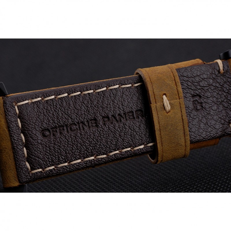 pulsera:calor Officine Panerai en relieve marrón con Panerai grabado ion-plateado broche de gancho hebilla