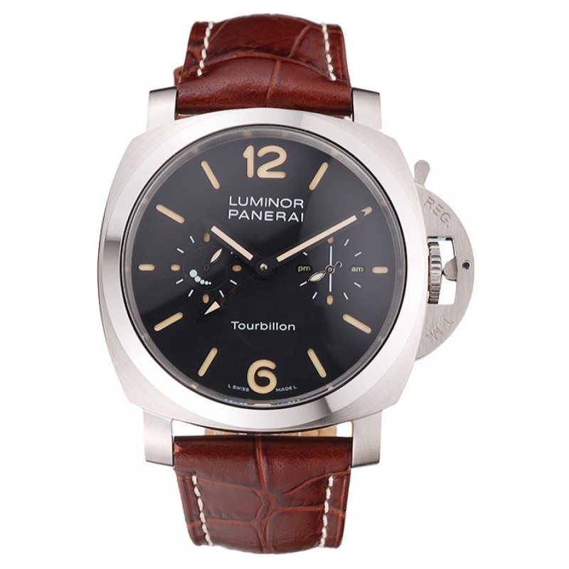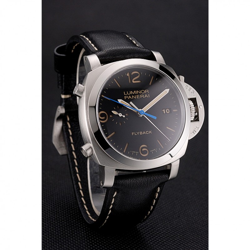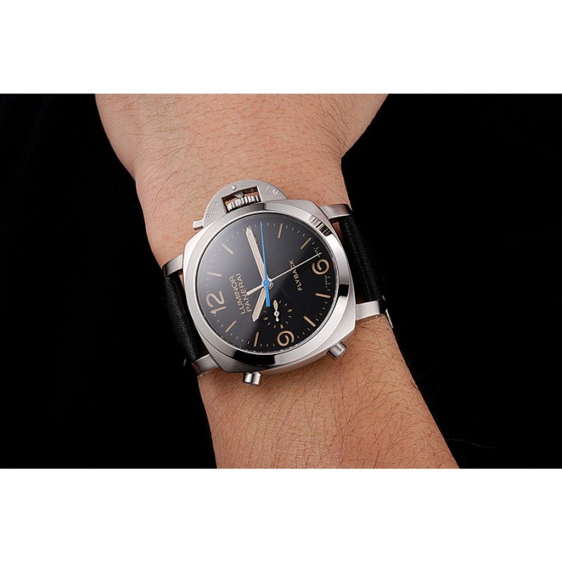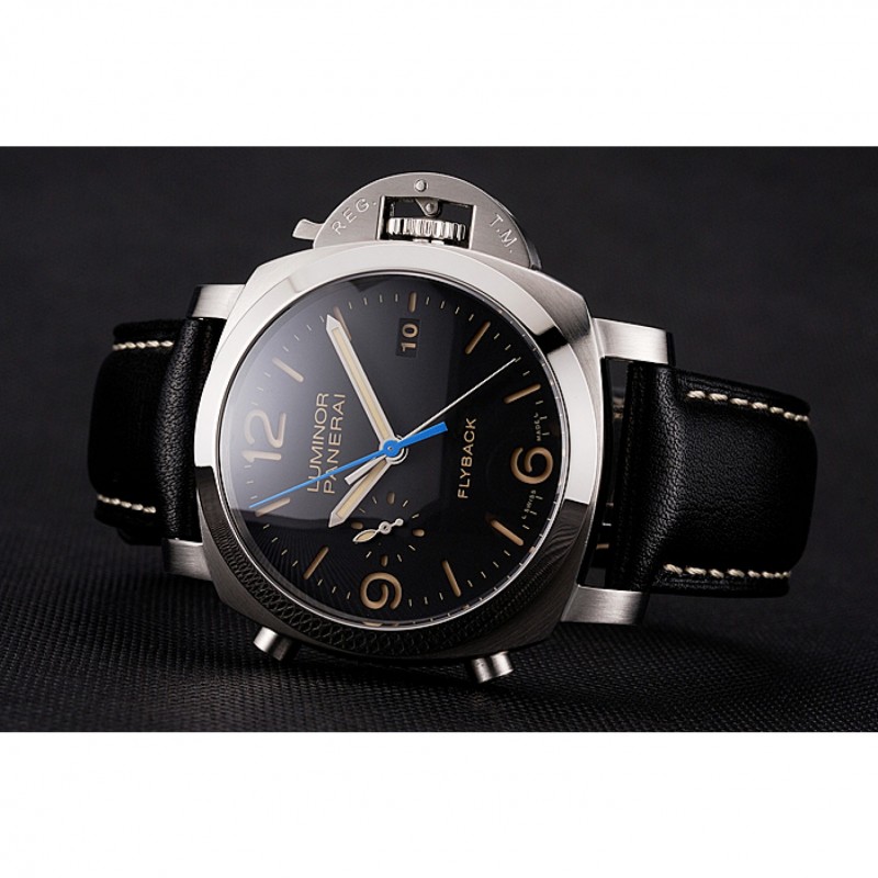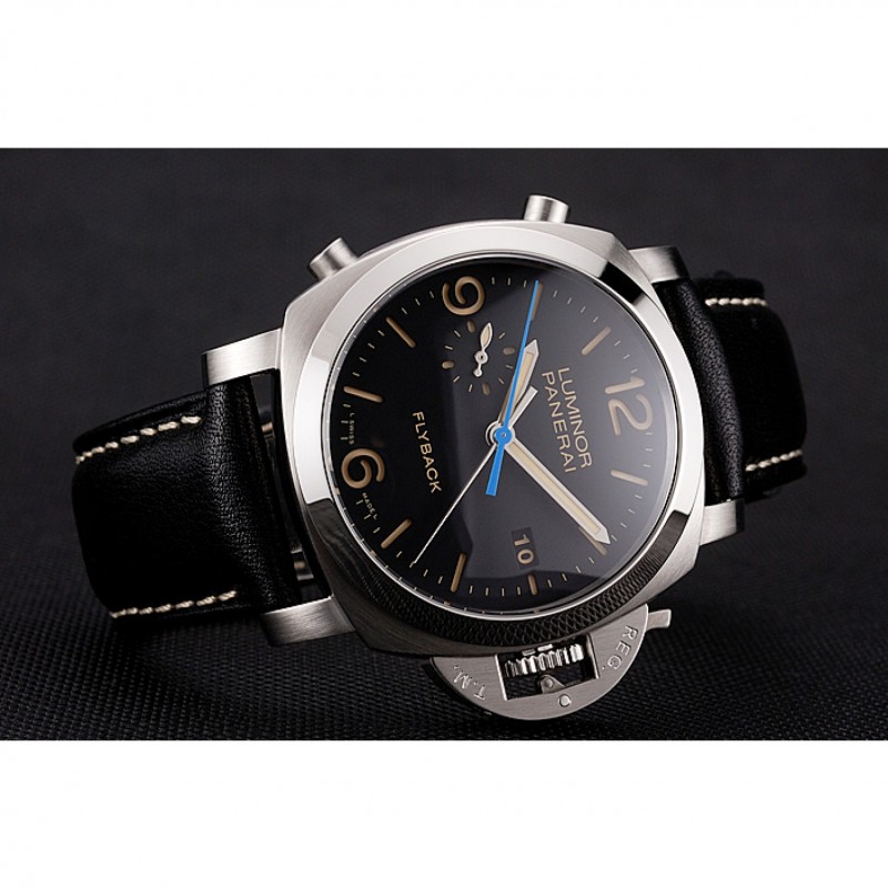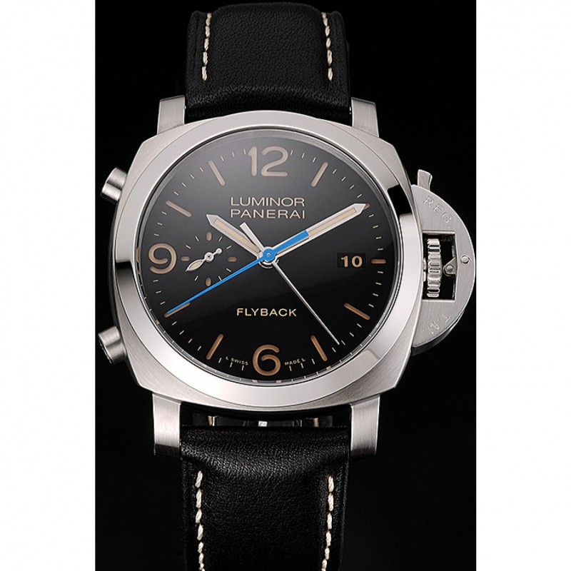 Suiza Panerai Luminor Flyback Cronógrafo Negro Dial correa de cuero caja de acero inoxidable Negro