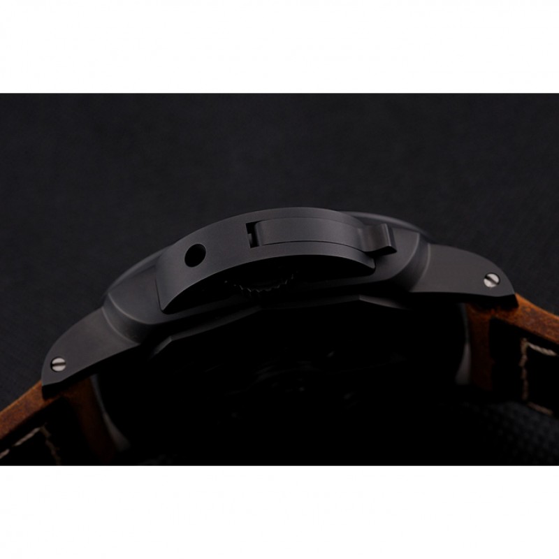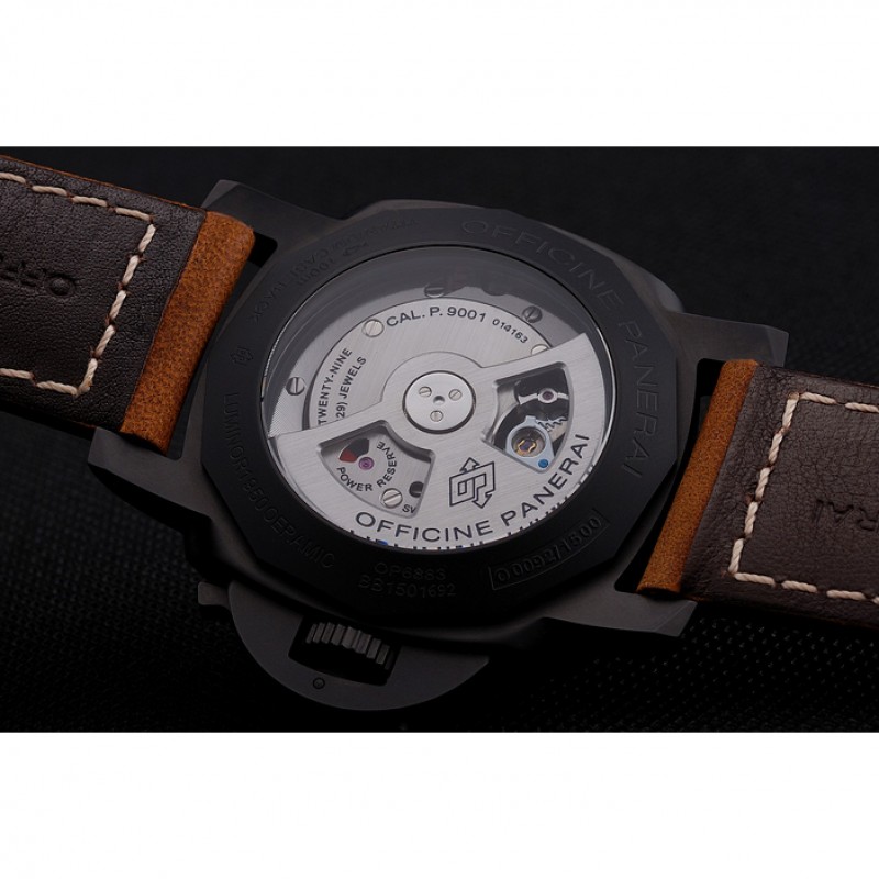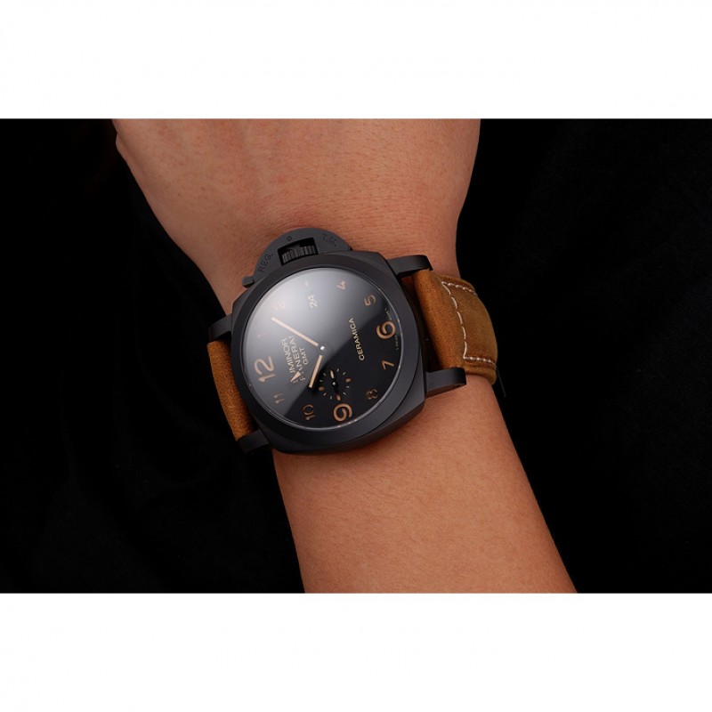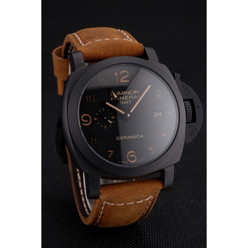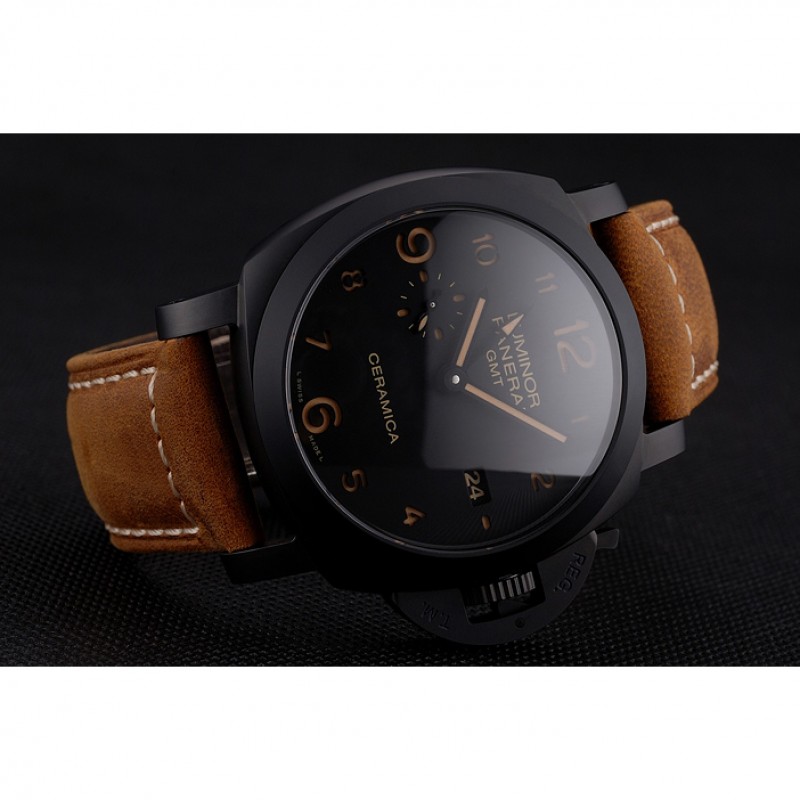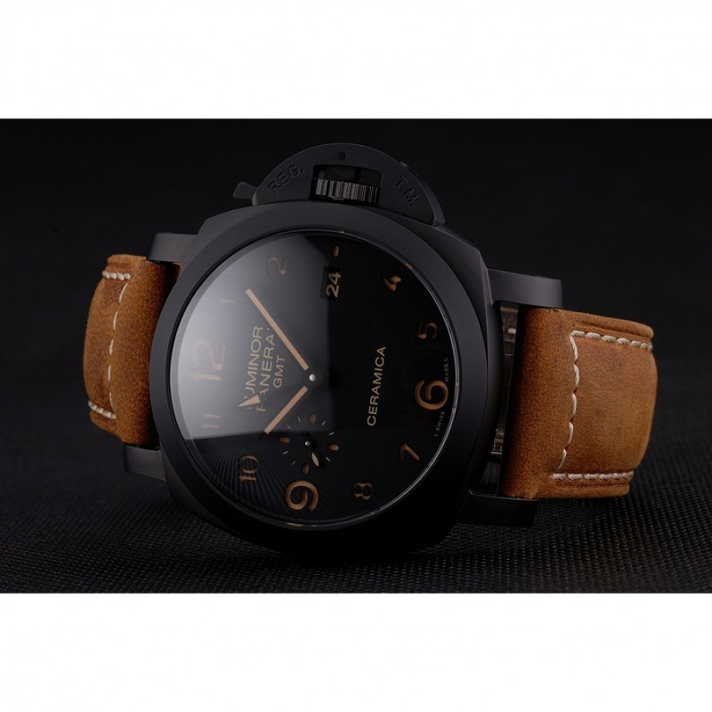 Suiza Panerai Luminor GMT Ceraica Negro Dial correa de cuero de la caja Negro Marrón