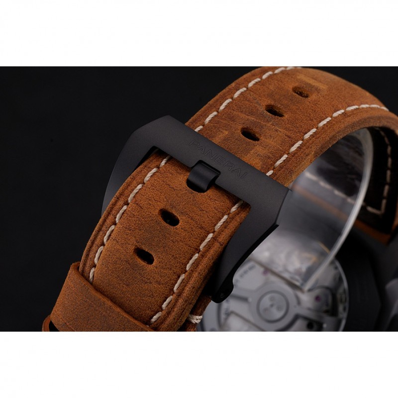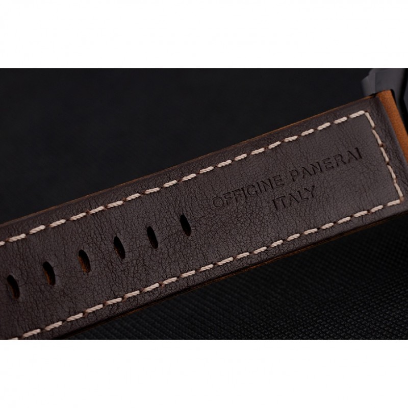 pulsera:Officine Panerai Italia calor en relieve marrón con costuras de hilo blanco y Panerai grabado ion-plateado gancho hebilla de cierre