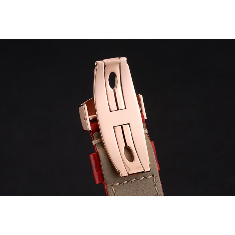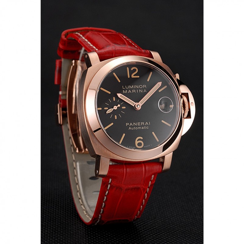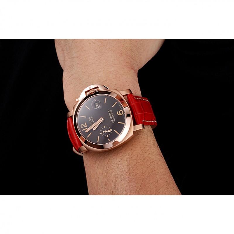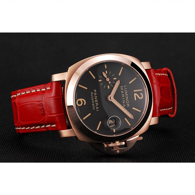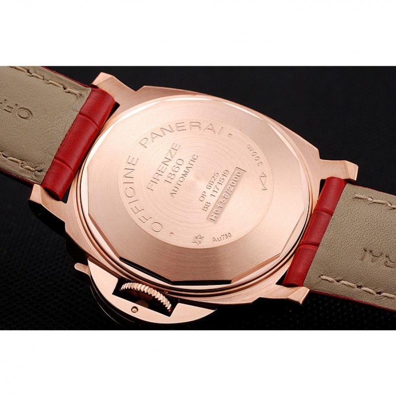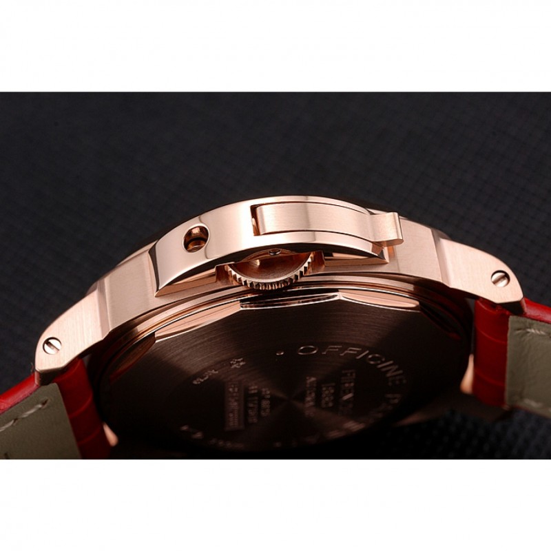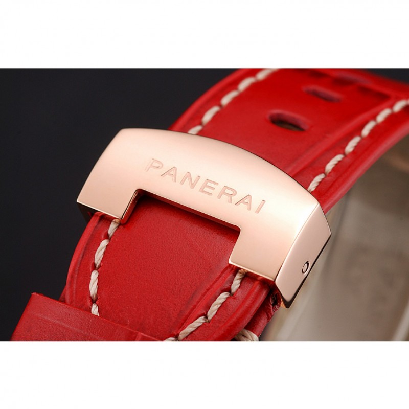 pulsera:calor/Officine Panerai correa de piel de cocodrilo roja estampada con costuras de hilo blanco y Panerai grabado rosa de 18 quilates chapado en oro del gancho del corchete