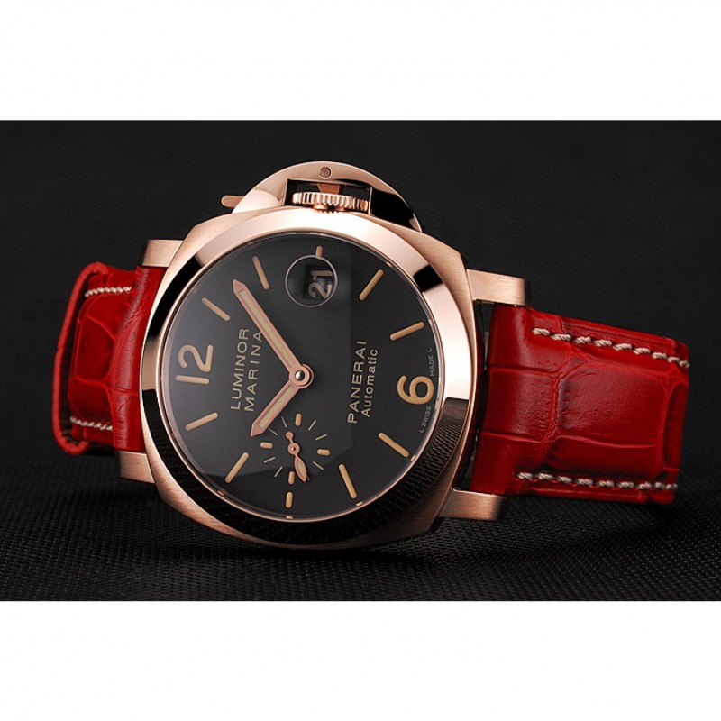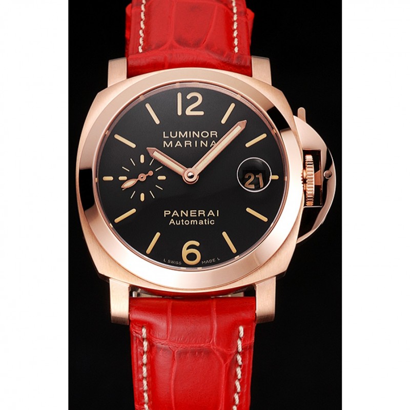 Suiza Panerai Luminor Marina Negro Dial correa de cuero de oro rosa roja Caso