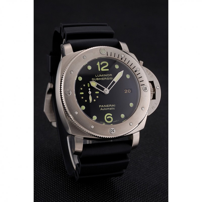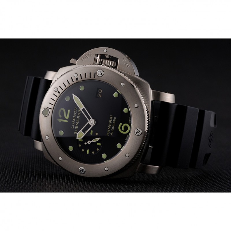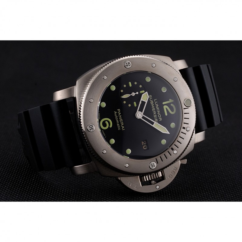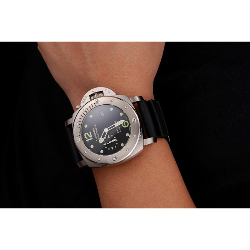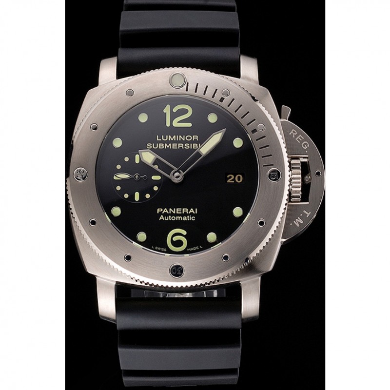 Suiza Panerai Luminor sumergibles Negro Dial Caja de acero inoxidable correa de caucho Negro