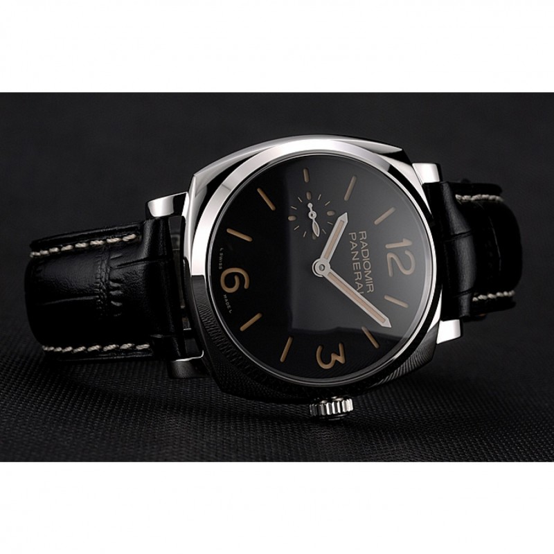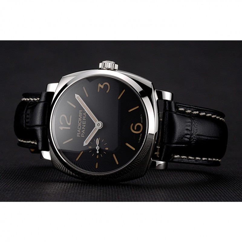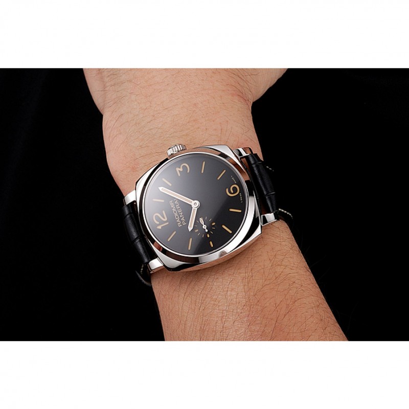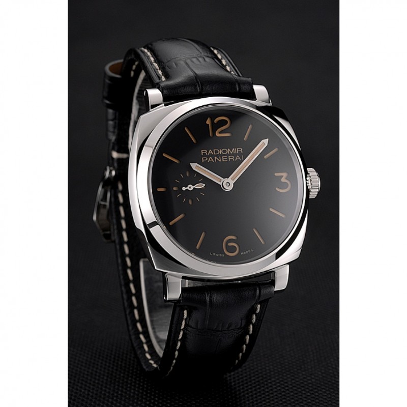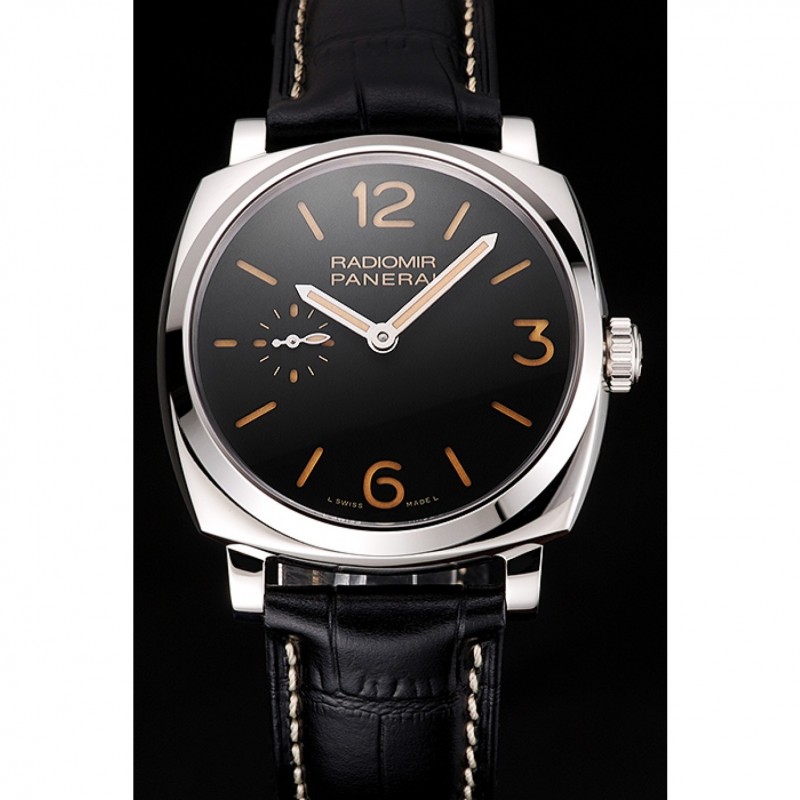 Suiza Panerai Negro Dial correa de cuero caja de acero inoxidable Negro