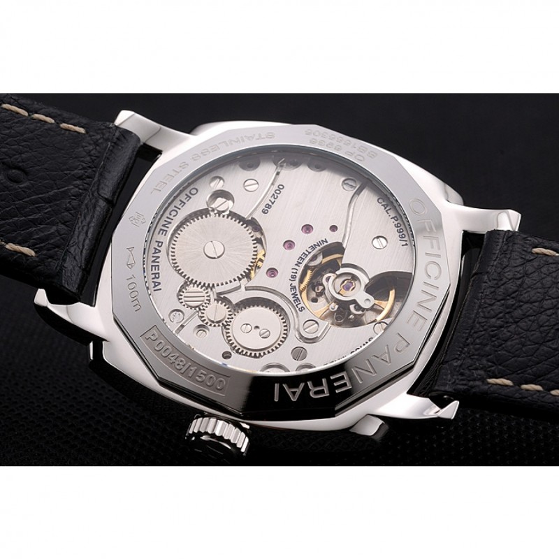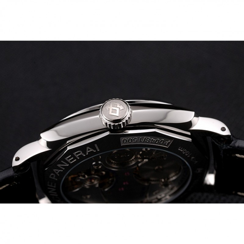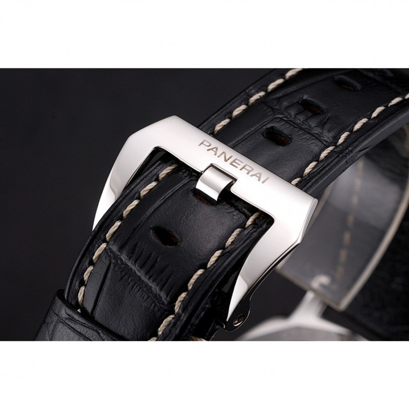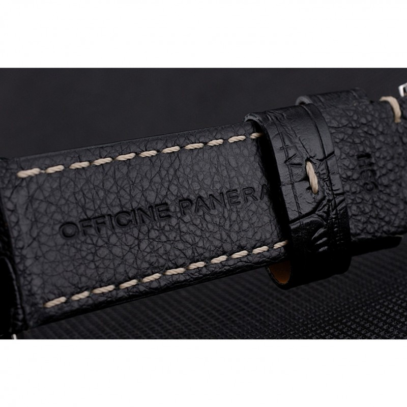 pulsera: relieve calor Officine Panerai correa de cuero Crocodie negro con costuras de hilo blanco y Panerai grabado de acero inoxidable pulido gancho hebilla de cierre
