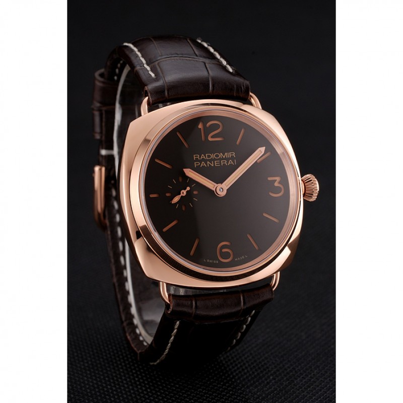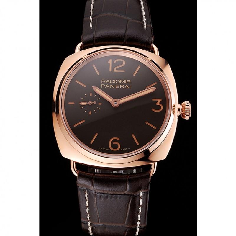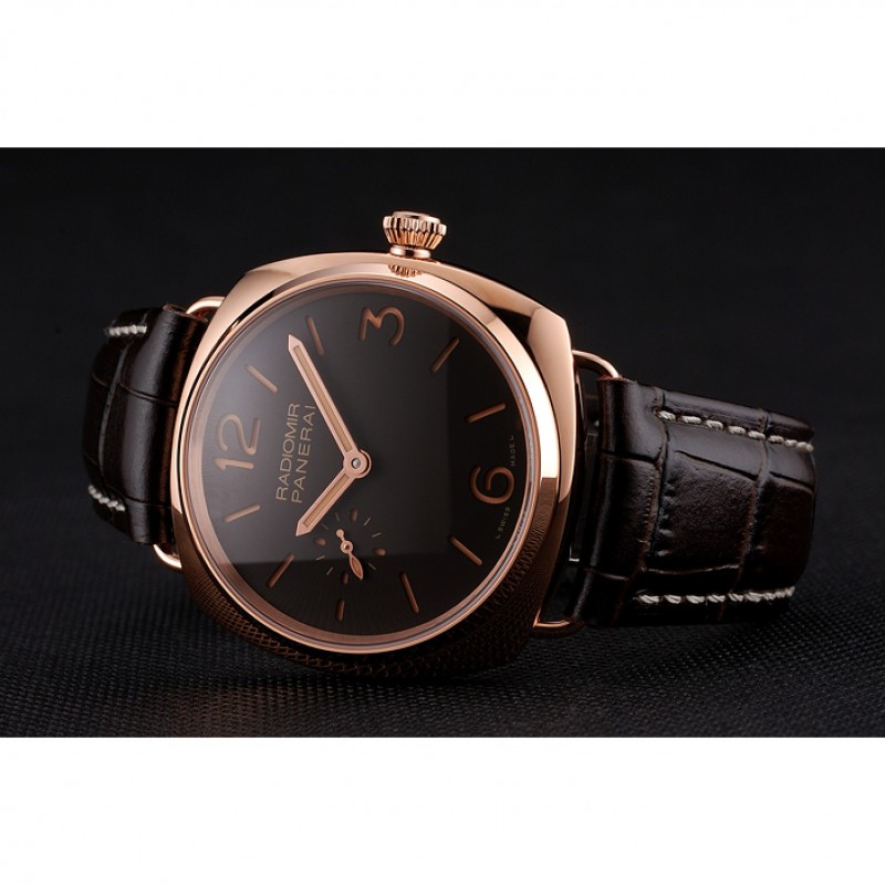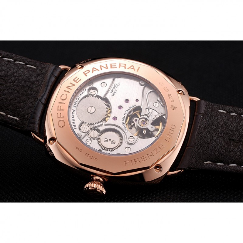 Suiza Panerai Oro Rosso Brown Dial correa de cuero de la caja de oro rosa Brown