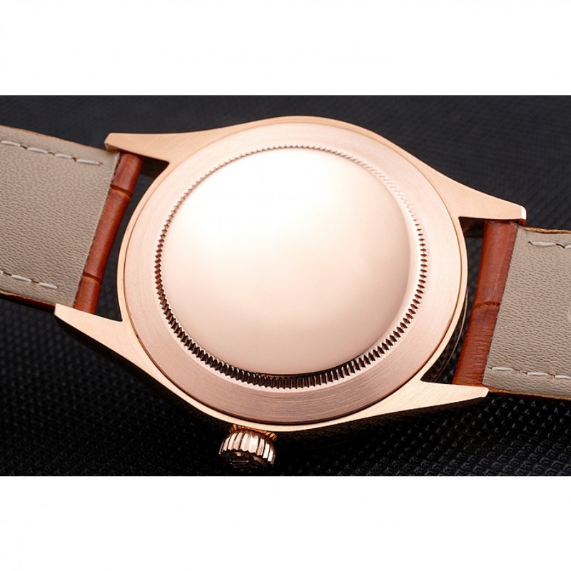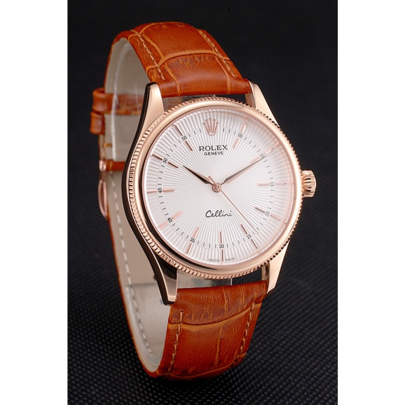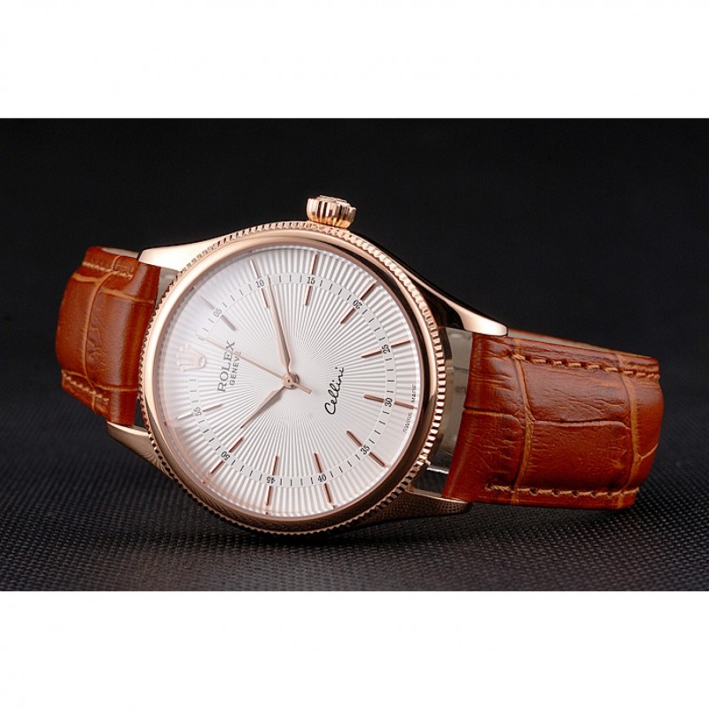 Suiza Rolex Cellini Blanco Dial correa de cuero de la caja de oro rosa Brown