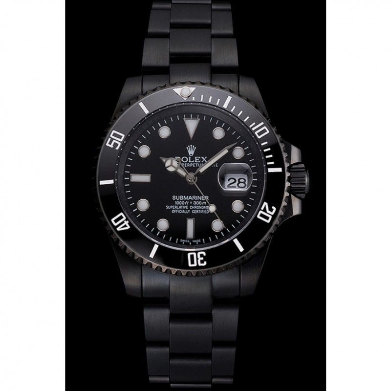 Suiza Rolex Submariner Date Negro Dial y PVD Bisel Negro y pulsera
