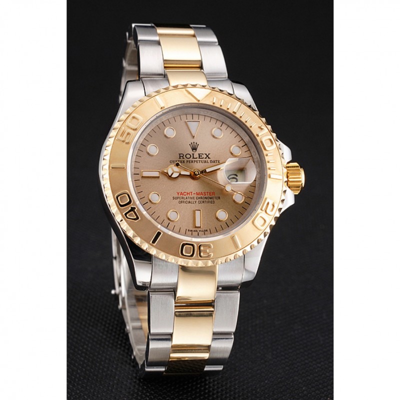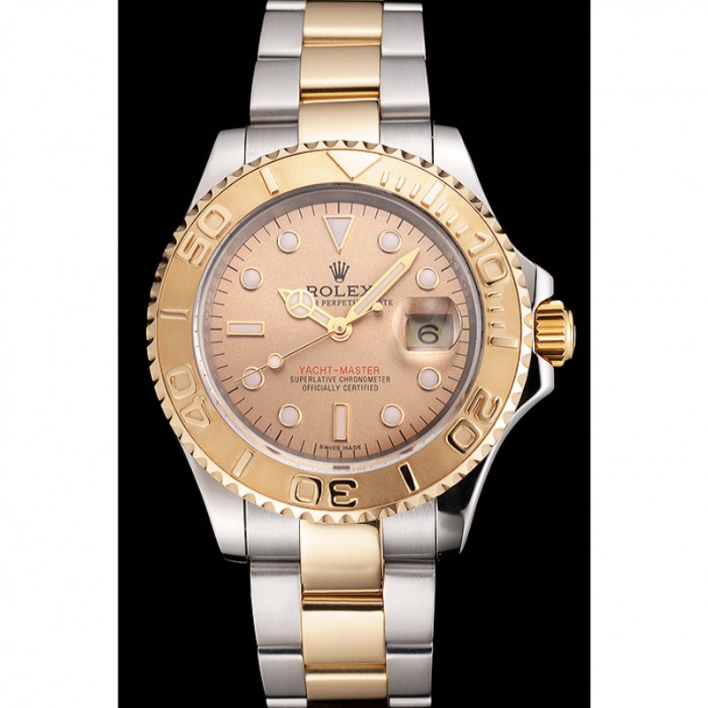 Suiza Rolex Yacht-Master Champagne Dial Caja de acero inoxidable bisel de oro pulsera de dos tonos