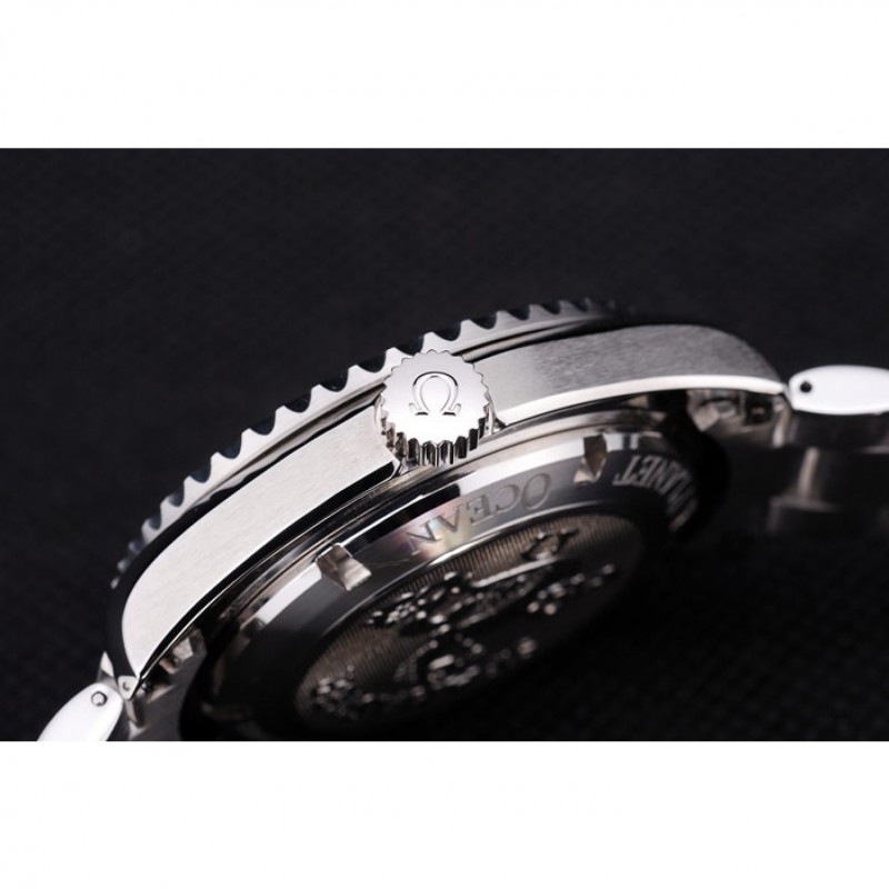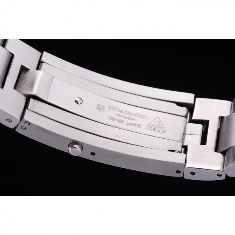 corona: de acero inoxidable pulido cutwork corona con logo Omega además otra corona similares en la esquina superior opuesta