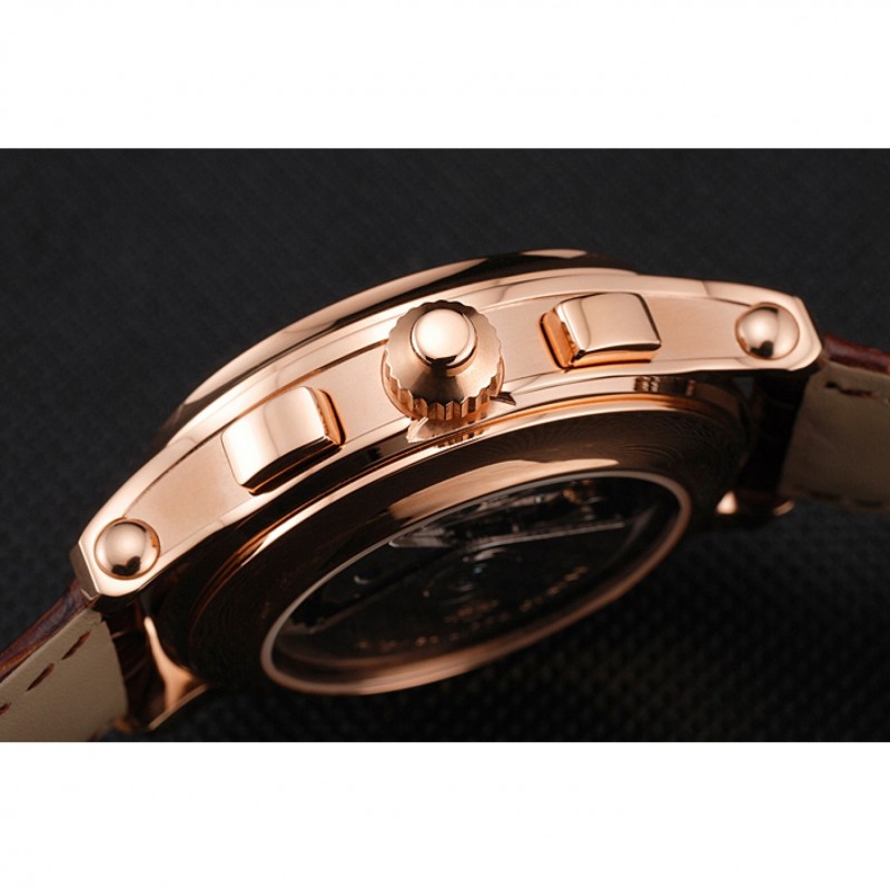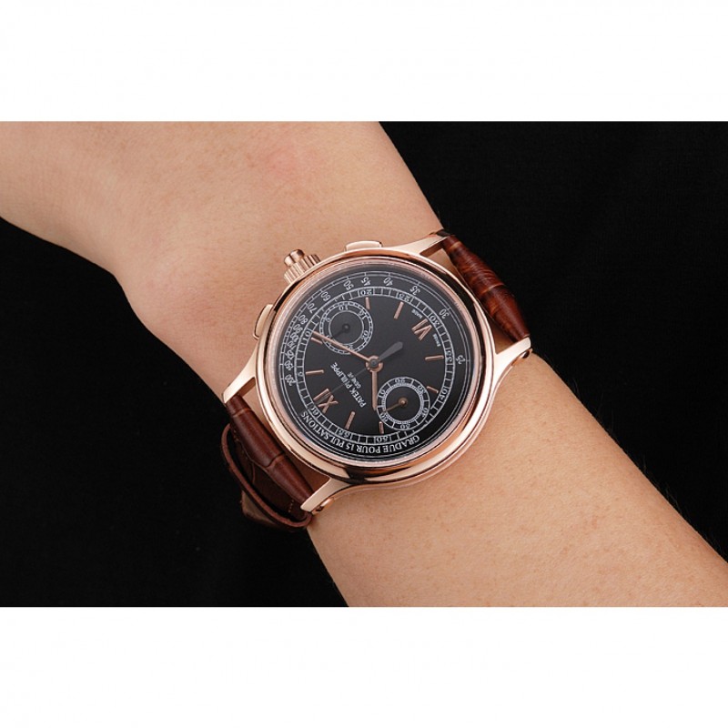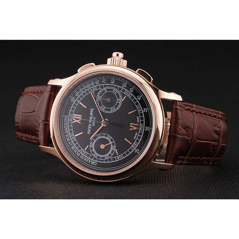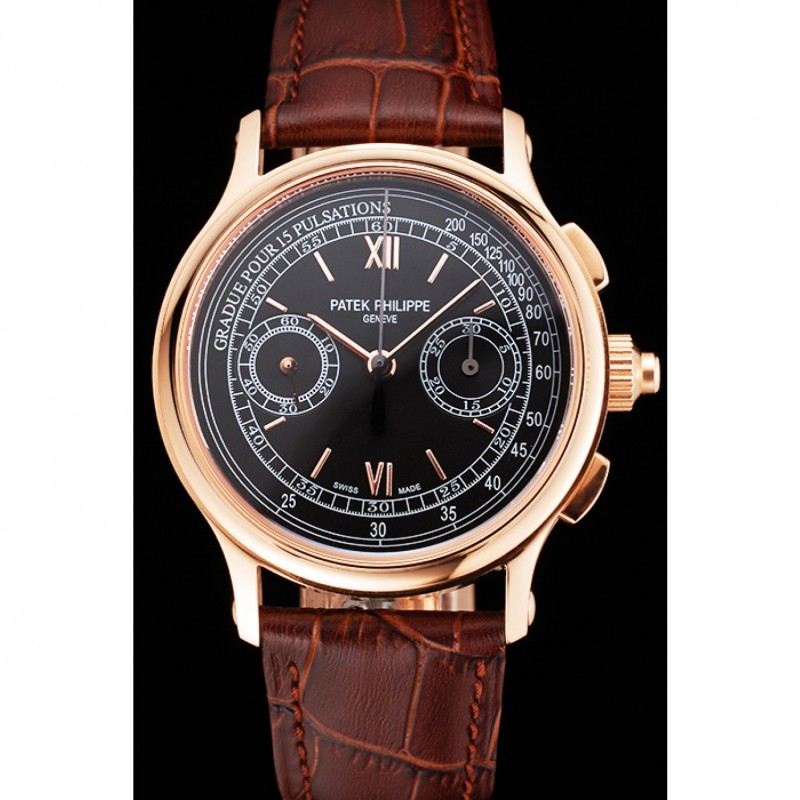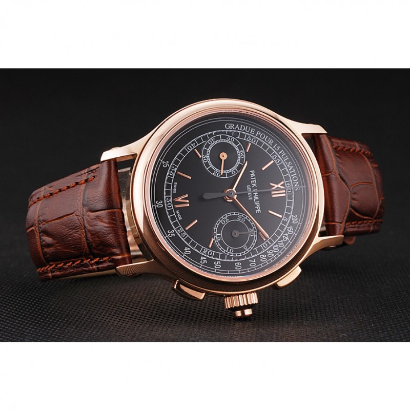 Suizo Patek Philippe 5170J Cronógrafo Negro Dial correa de cuero de la caja de oro rosa Brown