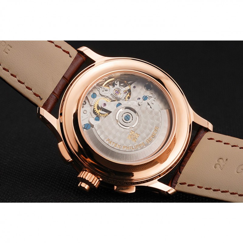 Volver: mechanics- transparente revelando de nuevo con un color de rosa 18K-chapado en oro complemento llanta y Patek Philippe inscripción