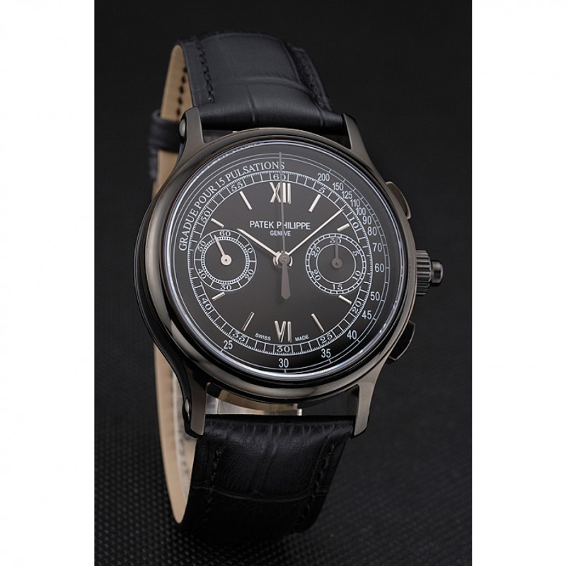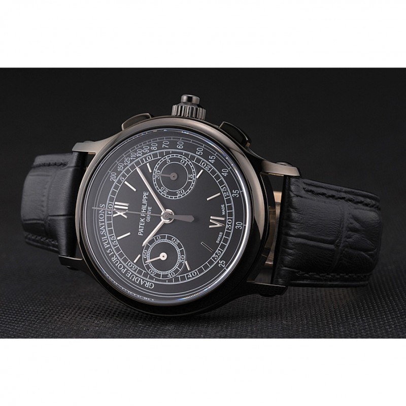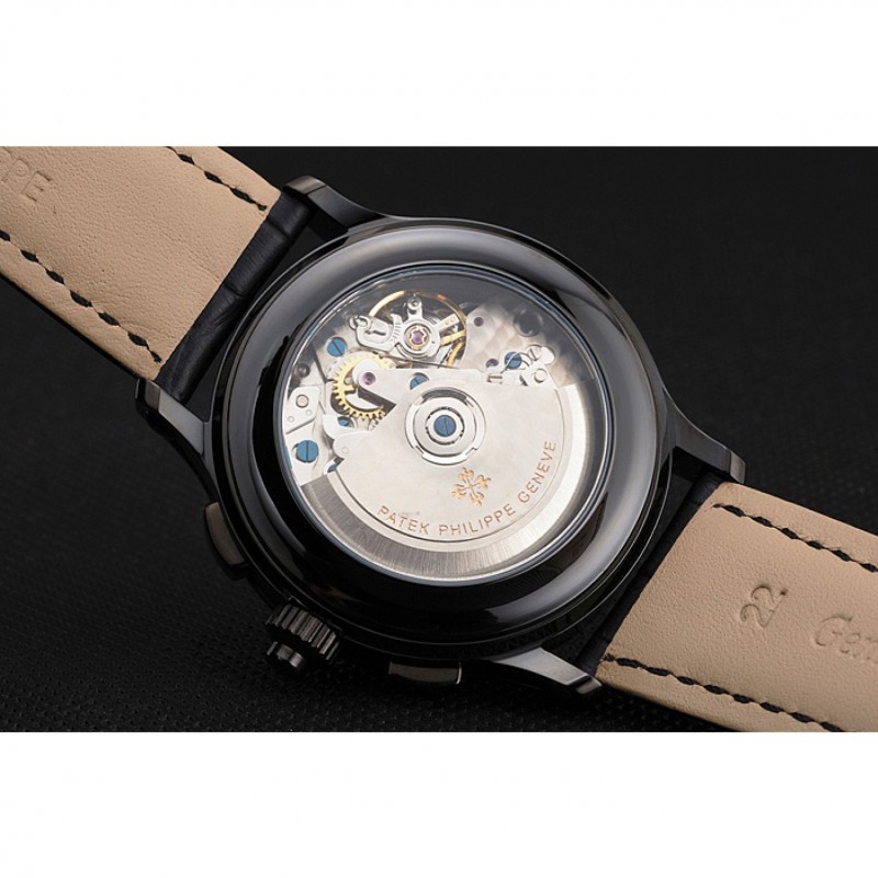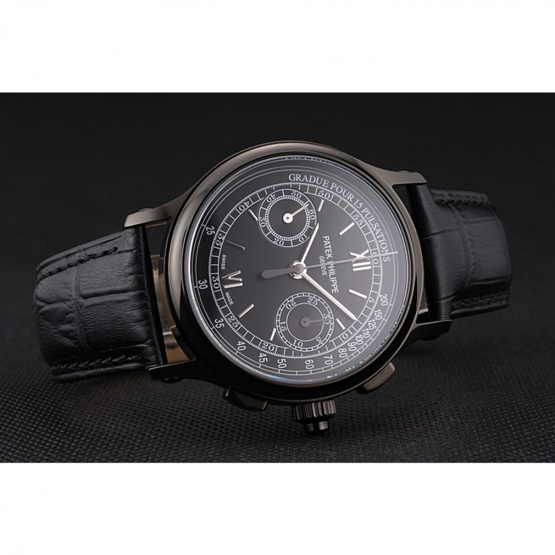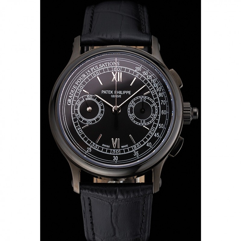 Suizo Patek Philippe 5170J Cronógrafo Negro Dial correa de cuero de la caja Negro Negro